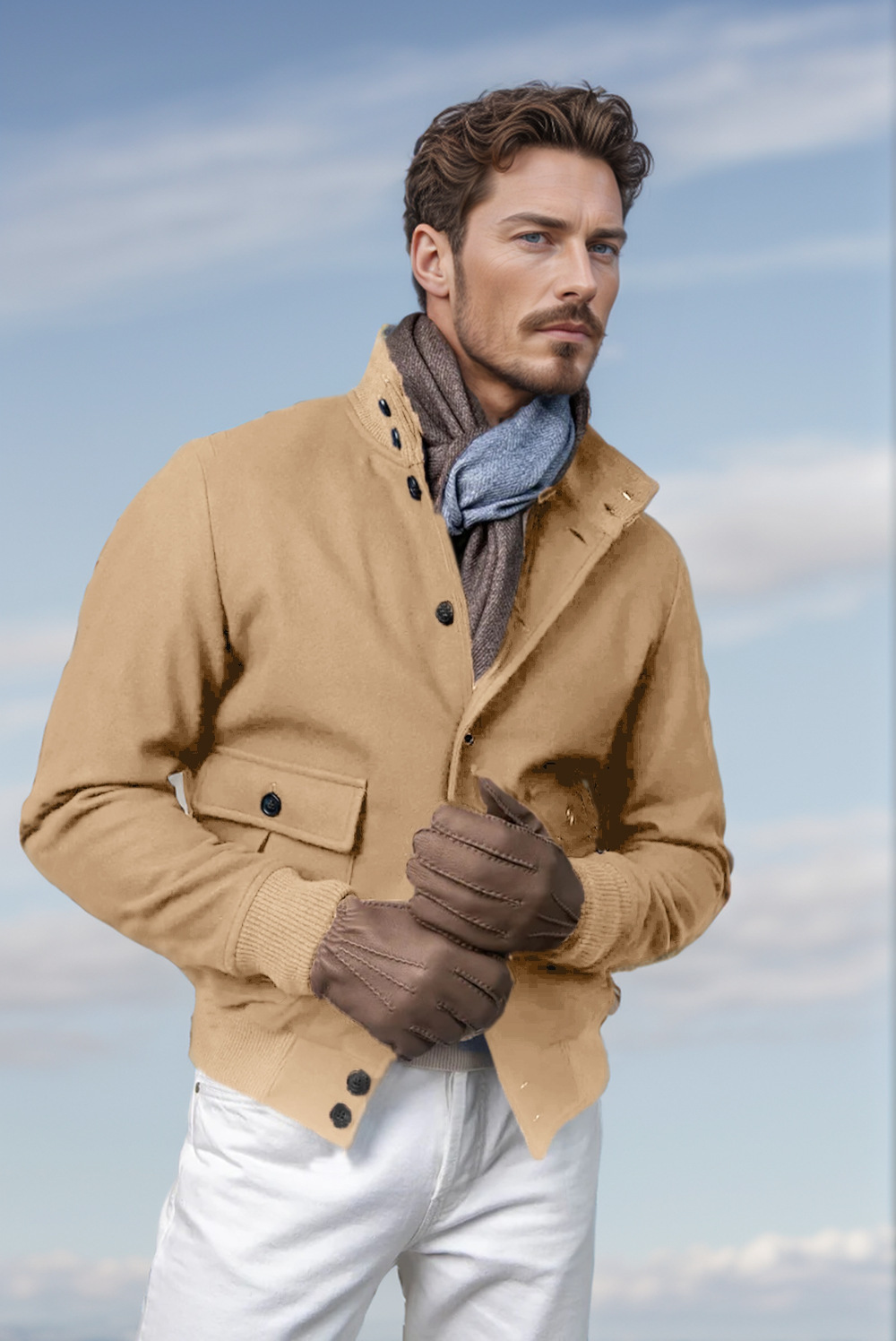 국경 간 재고 새로운 남성 유럽과 미국 남성의 봄과 가을 모직 재킷 코트 줄 칼라 긴 소매 스탠드 칼라 탑
