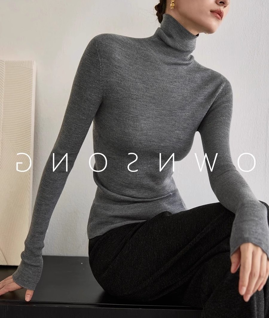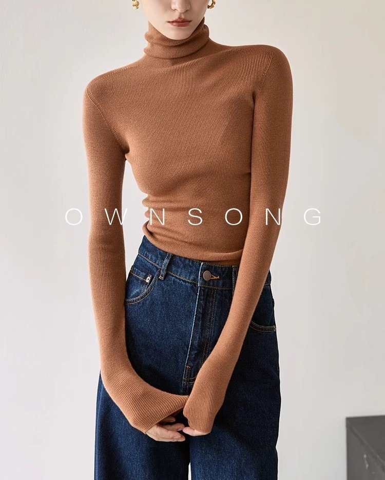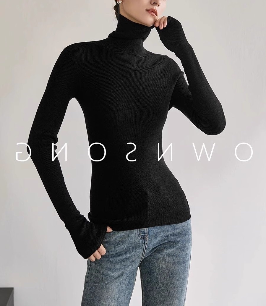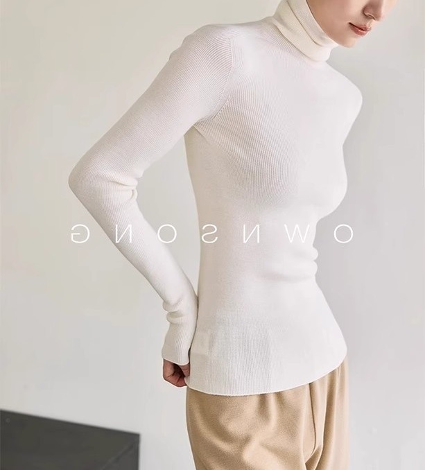 레드 하이 넥 원활한 원피스 니트베이스 셔츠 여성용 가을과 겨울 슬림핏 내부 스웨터 어깨 긴 소매 스택 탑스토어 가기