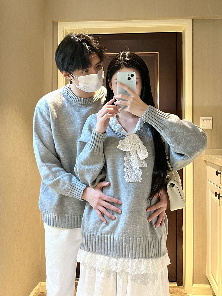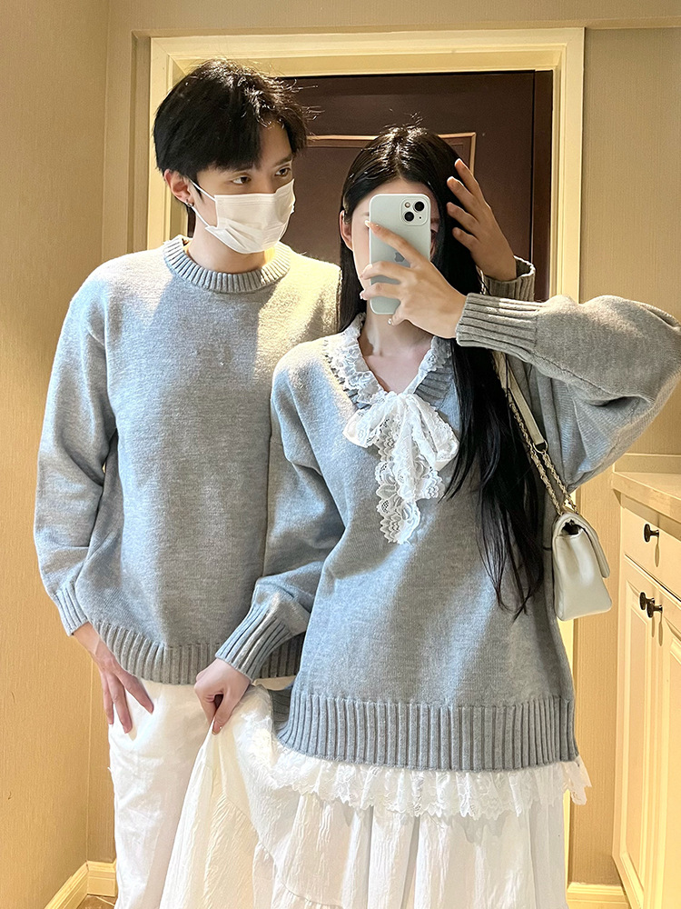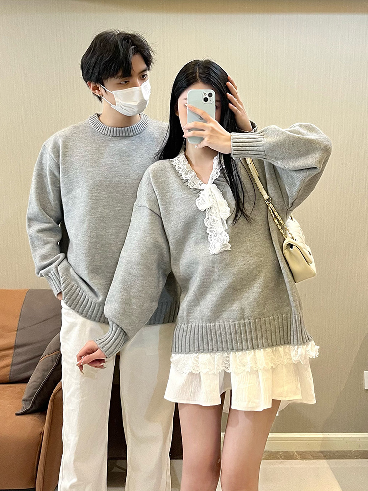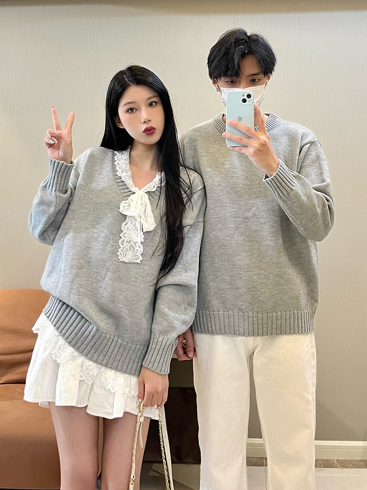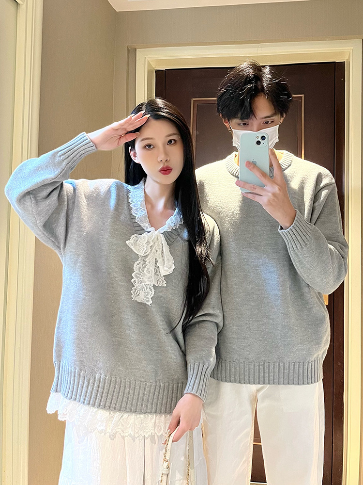 2024 게으른 바람 레이스 애호가 가을 새로운 양모 스웨터 긴 소매 재킷 남성과 여성의 교차-머리카락 세대스토어 가기