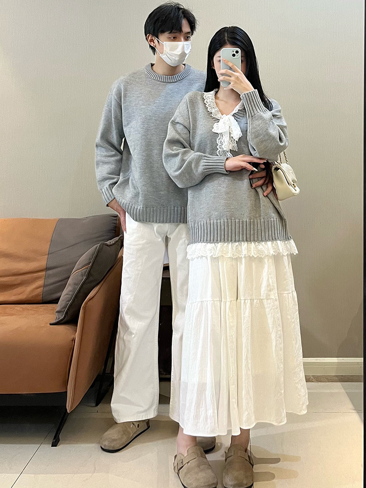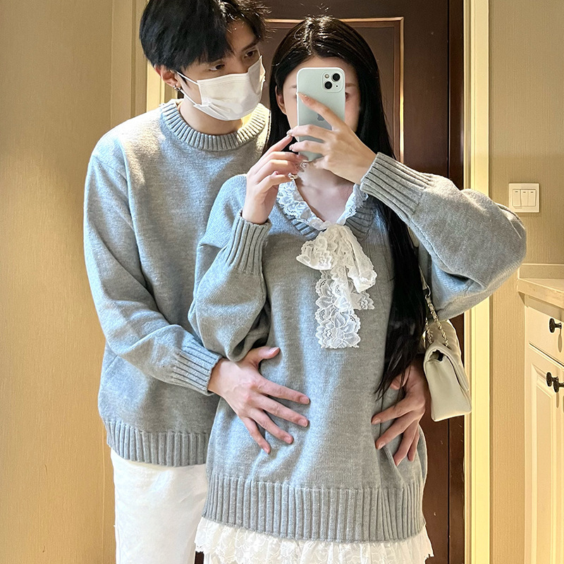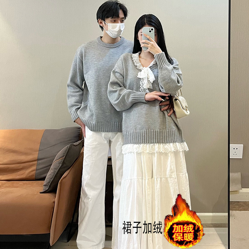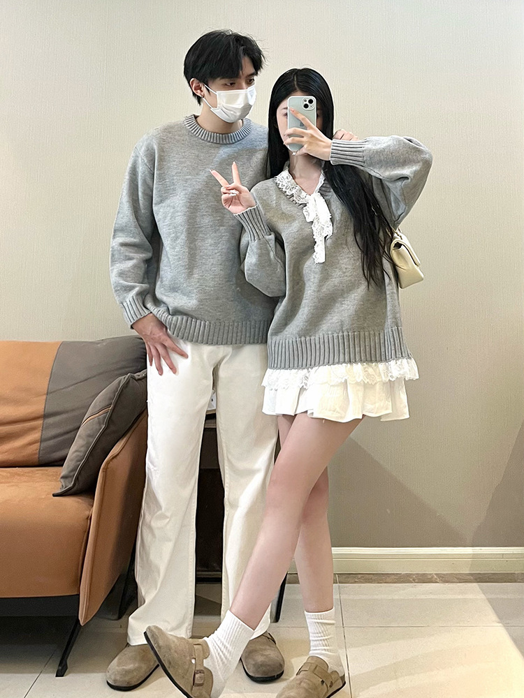 2024 게으른 바람 레이스 애호가 가을 새로운 양모 스웨터 긴 소매 재킷 남성과 여성의 교차-머리카락 세대