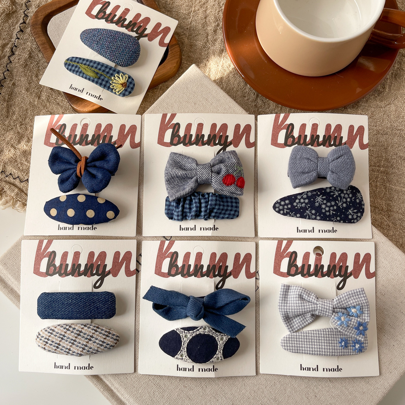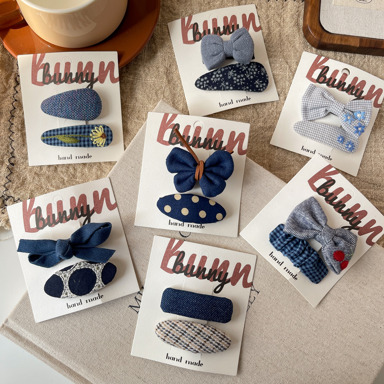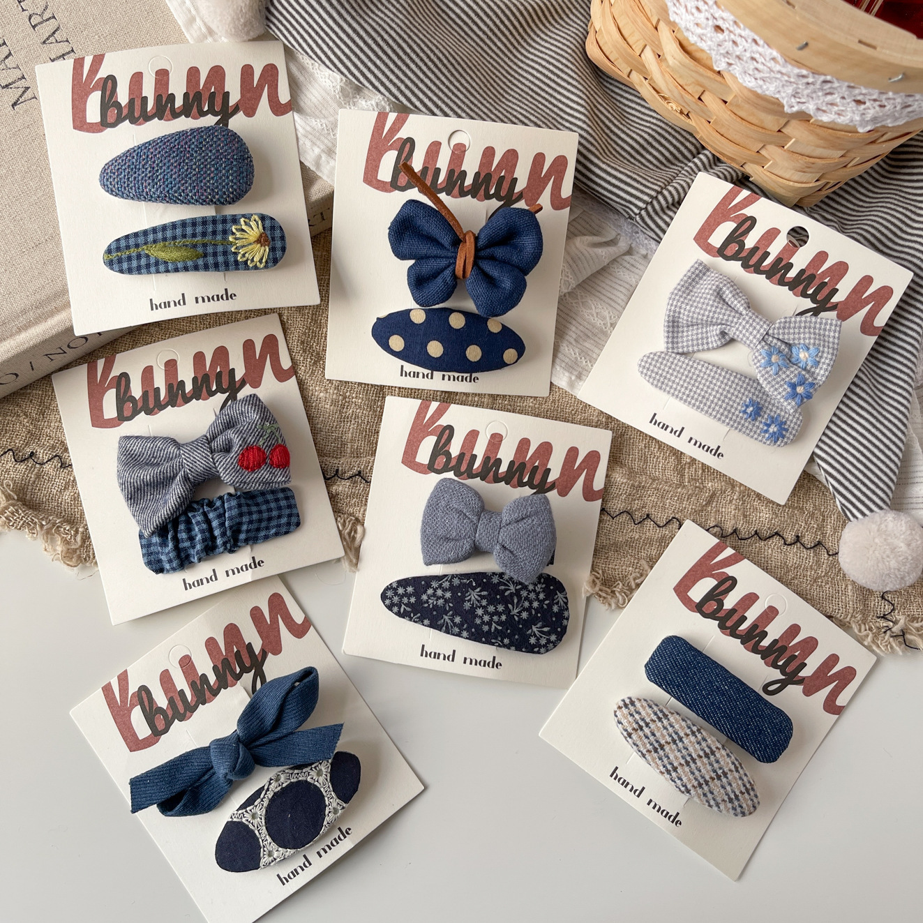 한국 스타일 블루 패브릭 어린이 헤어 클립 달콤한 올매치 깨진 헤어 뱅 부모-자식 조합 헤어 액세서리 소녀 헤어 클립