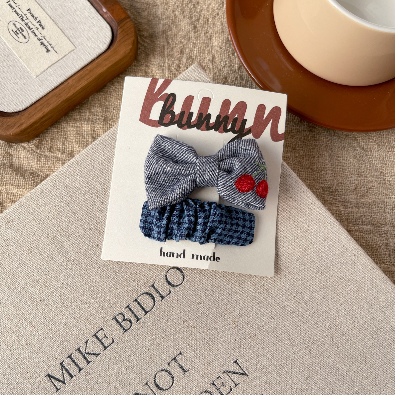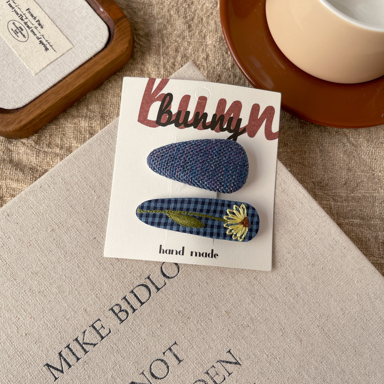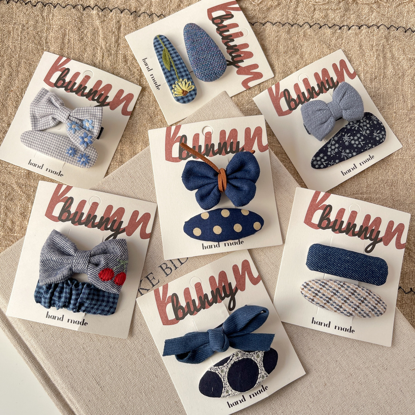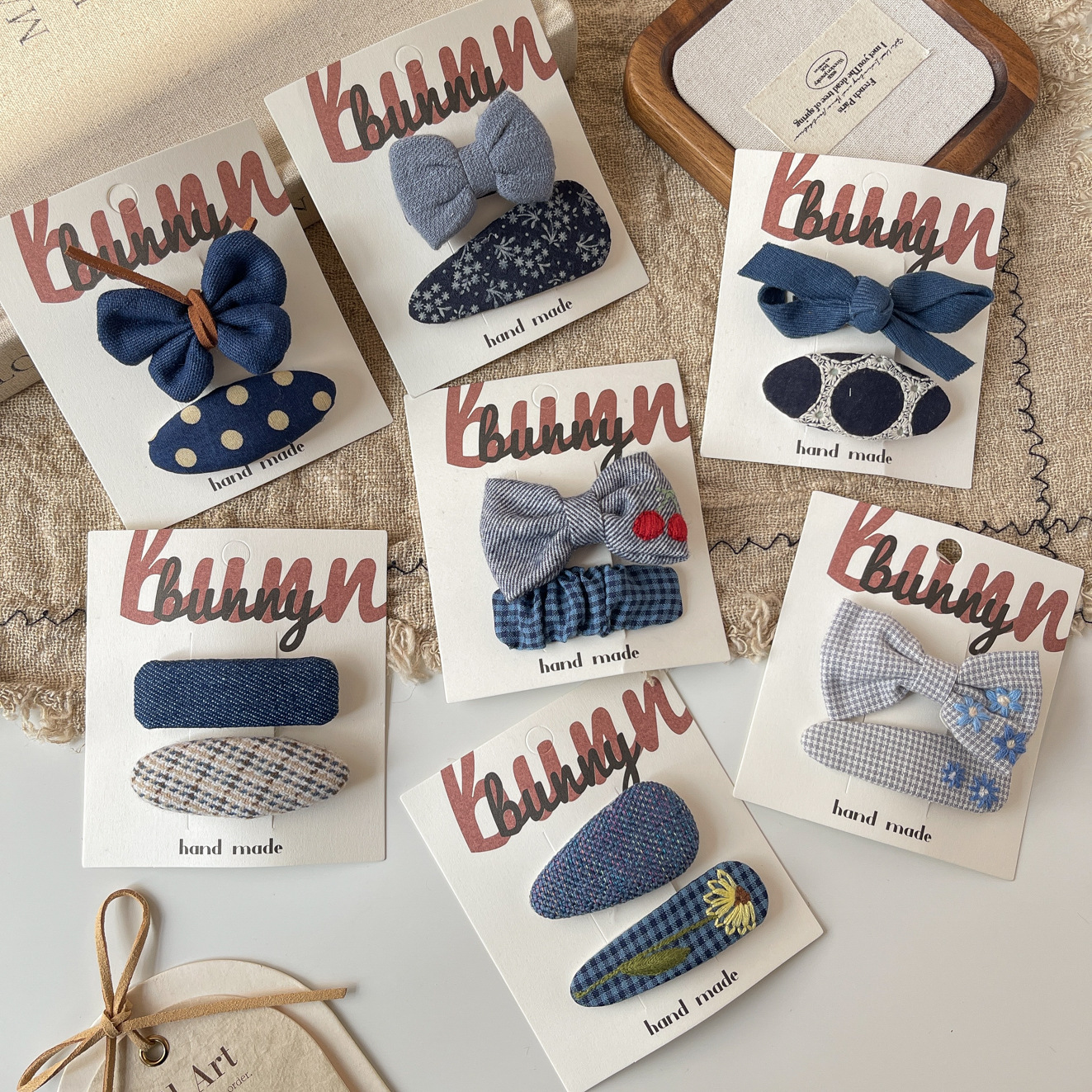 한국 스타일 블루 패브릭 어린이 헤어 클립 달콤한 올매치 깨진 헤어 뱅 부모-자식 조합 헤어 액세서리 소녀 헤어 클립