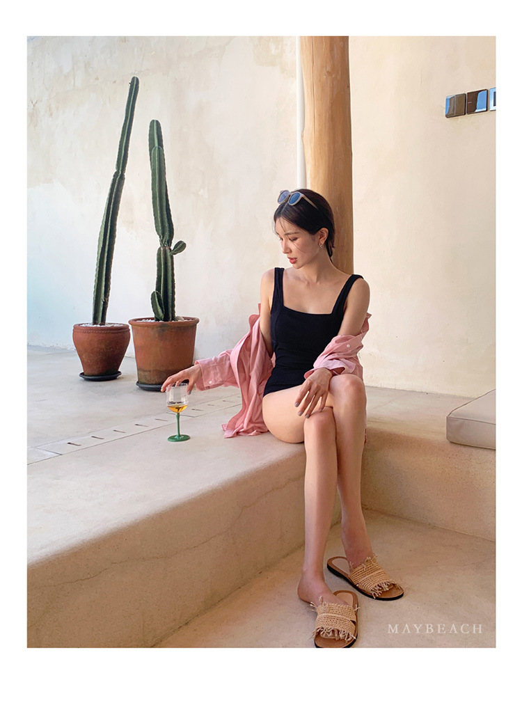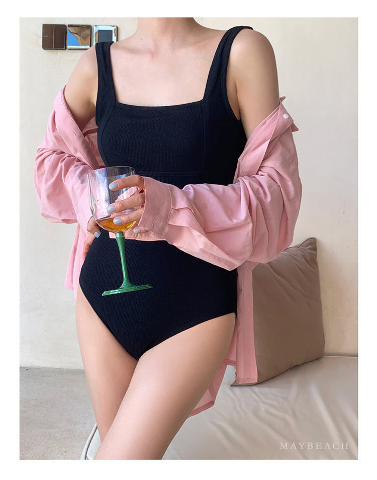 Ins 스타일 단색 간단한 복고풍 수영복 여성용 슬림 배 뒤없는 사진 휴가 원피스 수영복 여성