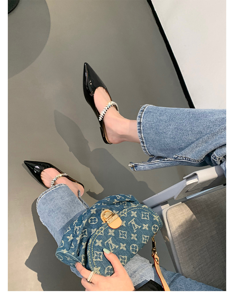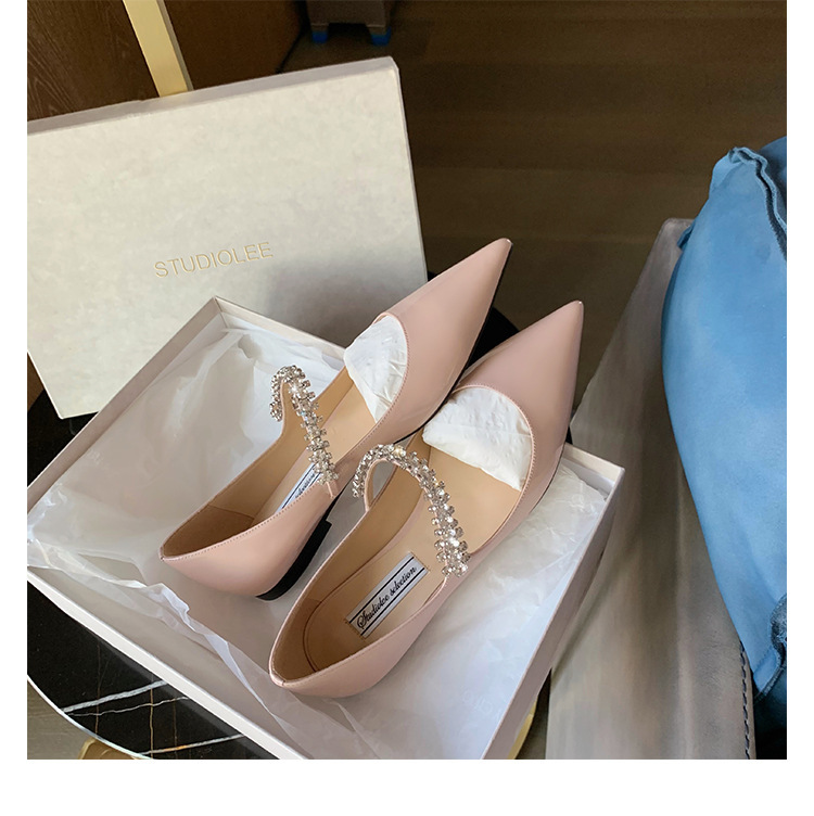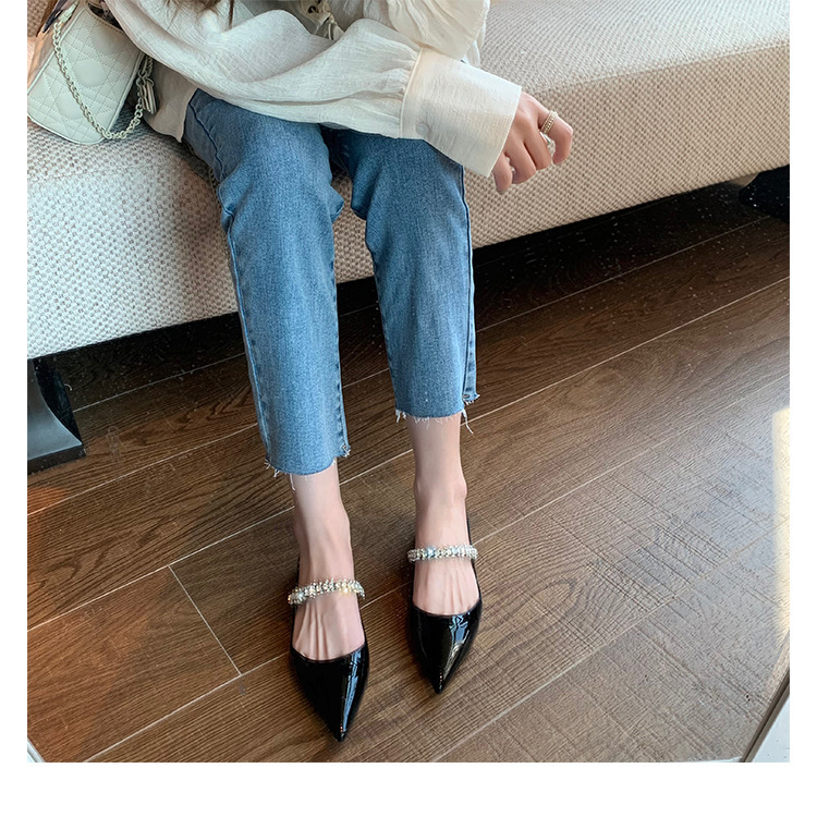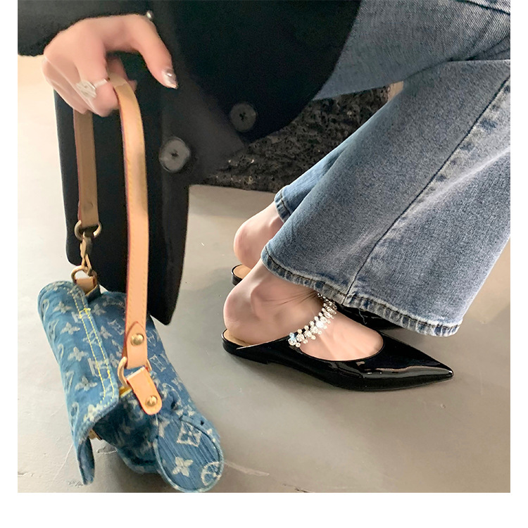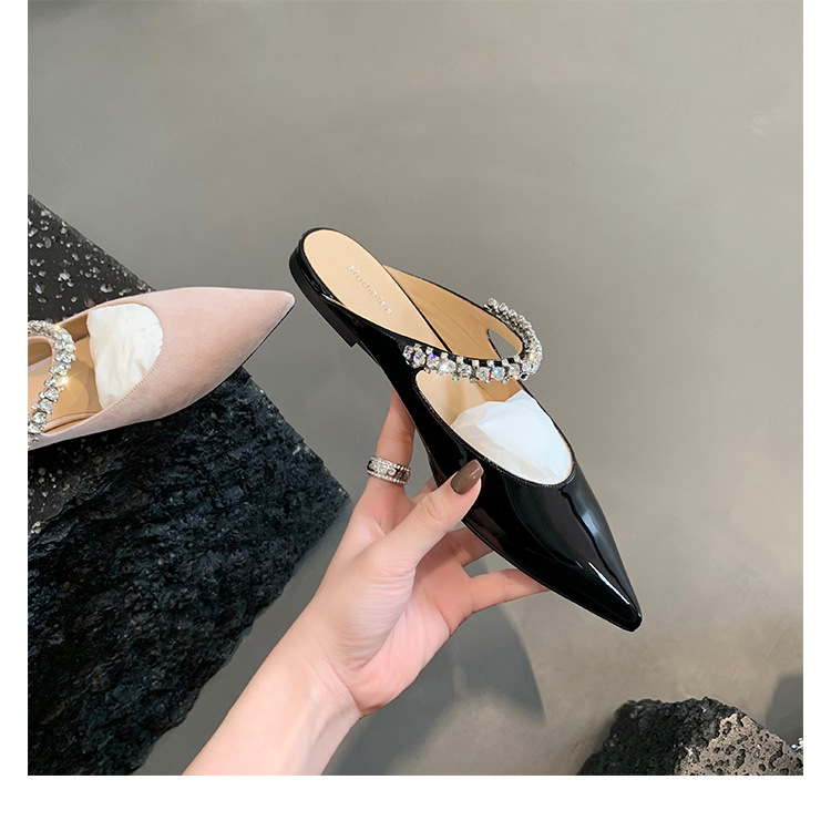 모조 다이아몬드 얕은 입 플랫 하프 드래그 메리 제인 요정 스타일 캐주얼 슈즈로 프랑스 기질 통근 단어스토어 가기