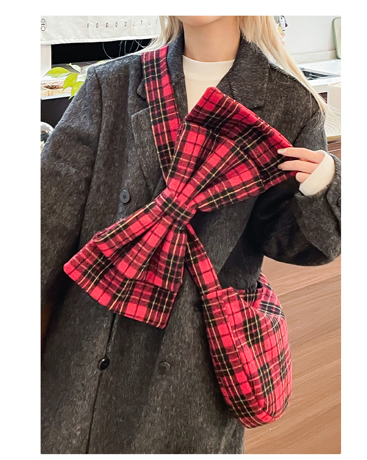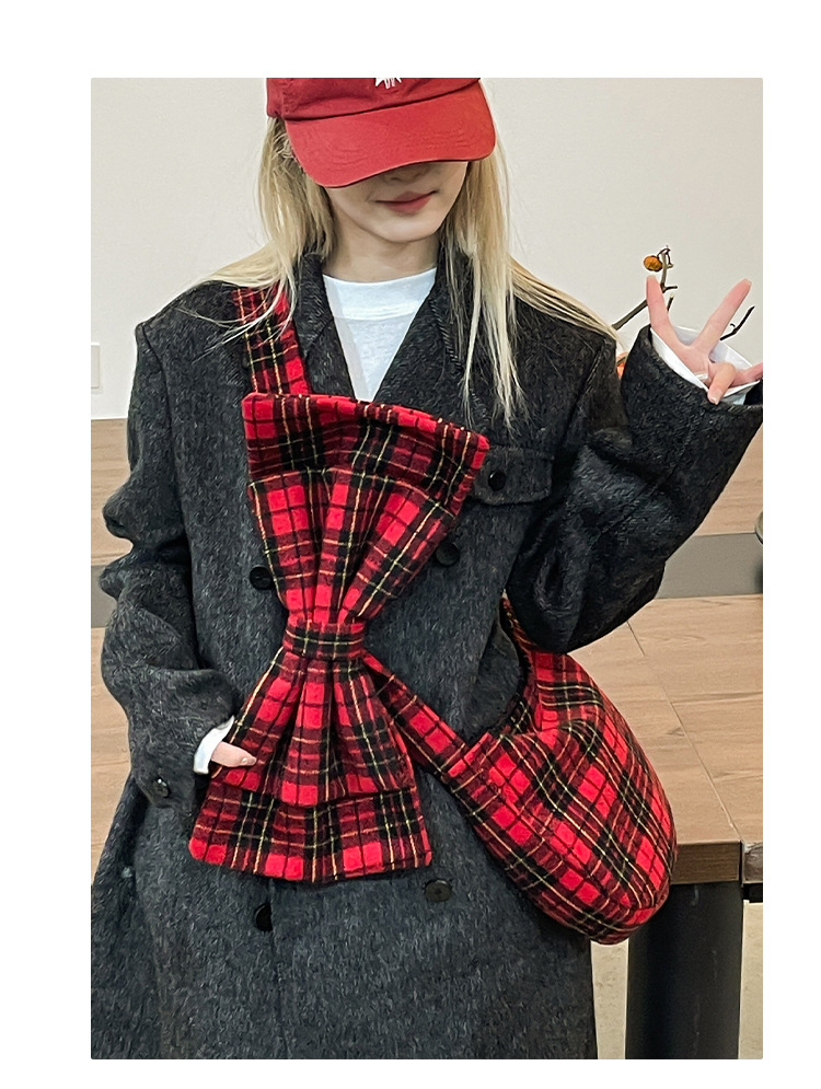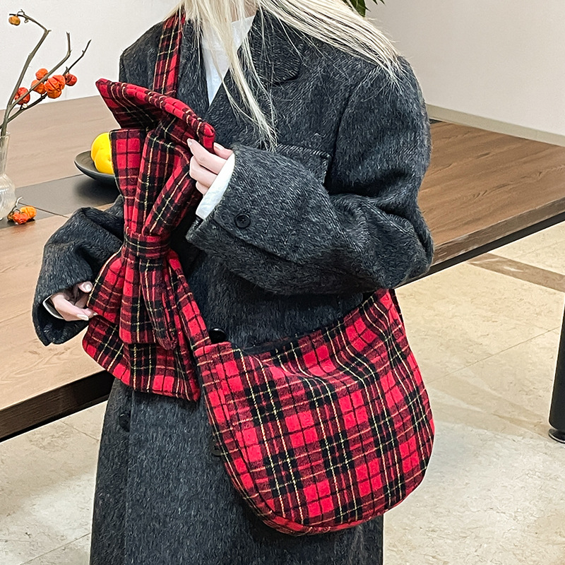 가을과 겨울 대용량 작업 통근 어깨 크로스 바디 백 여성의 2025 새로운 빨간 격자 무늬 활 모직 가방스토어 가기