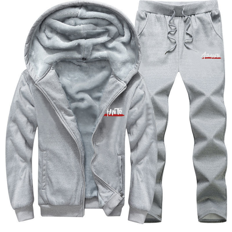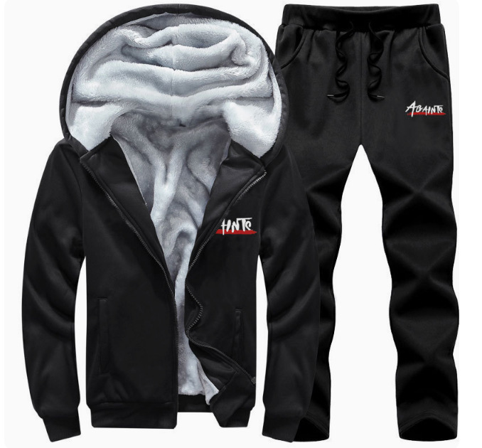 크로스보더 플러스 사이즈 겨울 벨벳 슈트 캐주얼 스포츠 스웨트 셔츠 카디건 투피스 세트 남성용 후드 벨벳 재킷