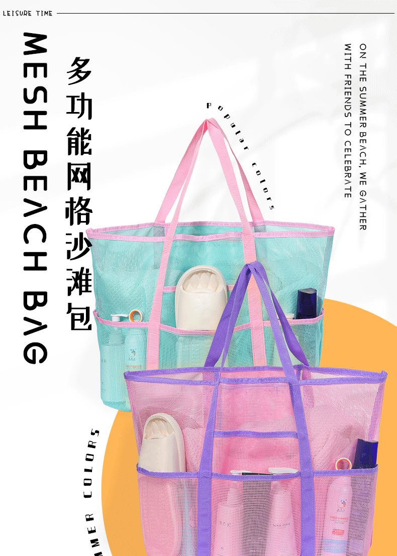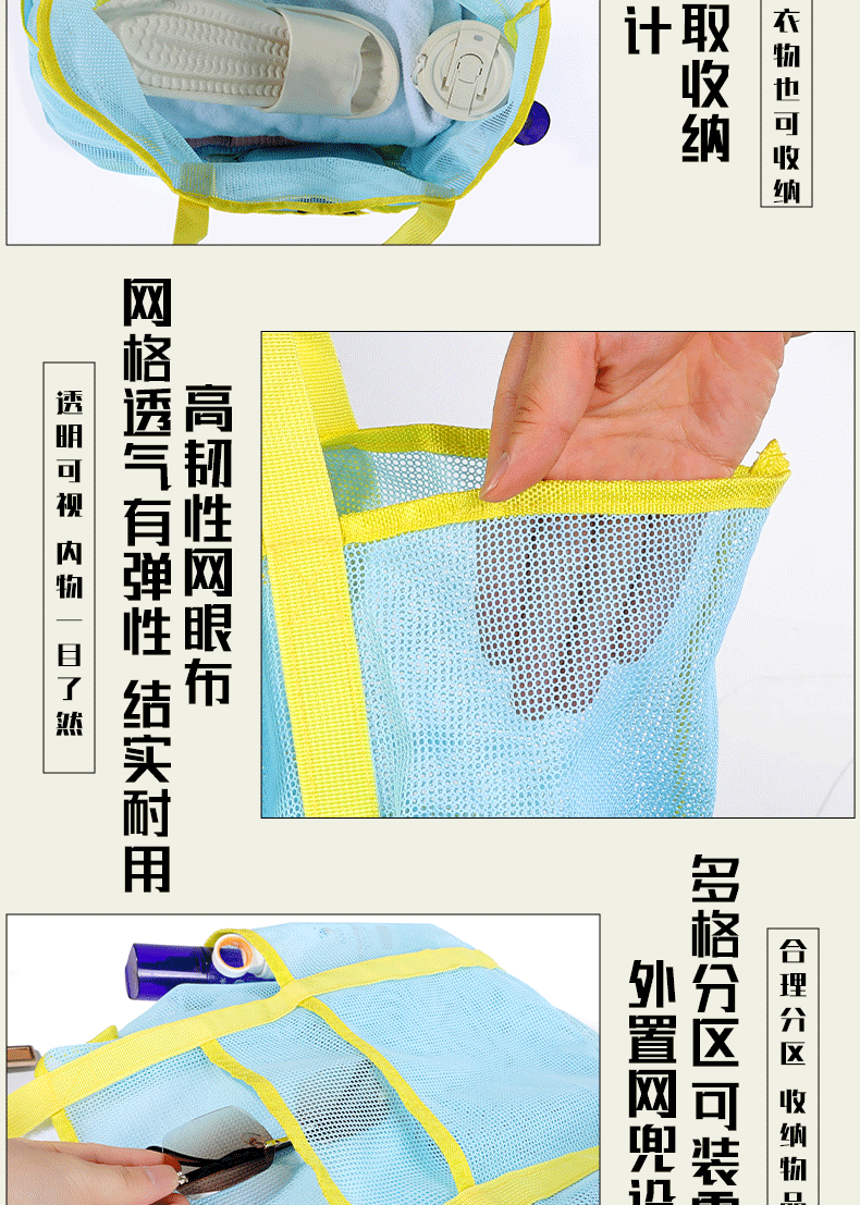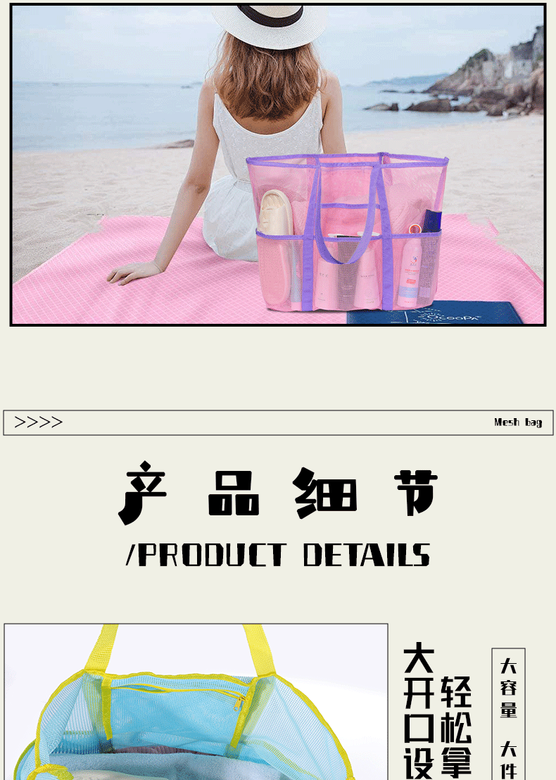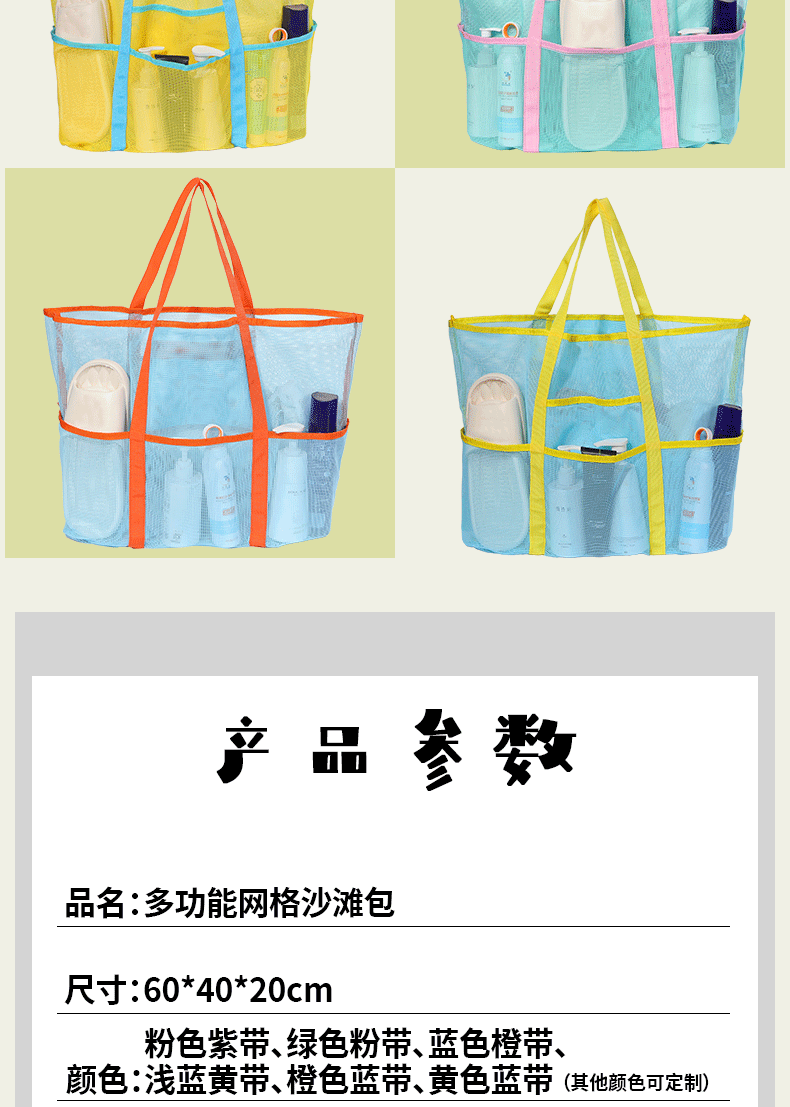 국경을 넘는 대형 비치백, 수영복 수납가방, 잡다한 정리 비치백, 메쉬 휴대용 수납 세면도구 가방