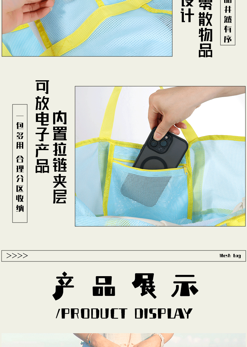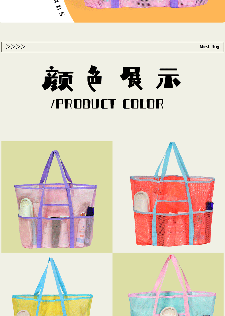국경을 넘는 대형 비치백, 수영복 수납가방, 잡다한 정리 비치백, 메쉬 휴대용 수납 세면도구 가방스토어 가기