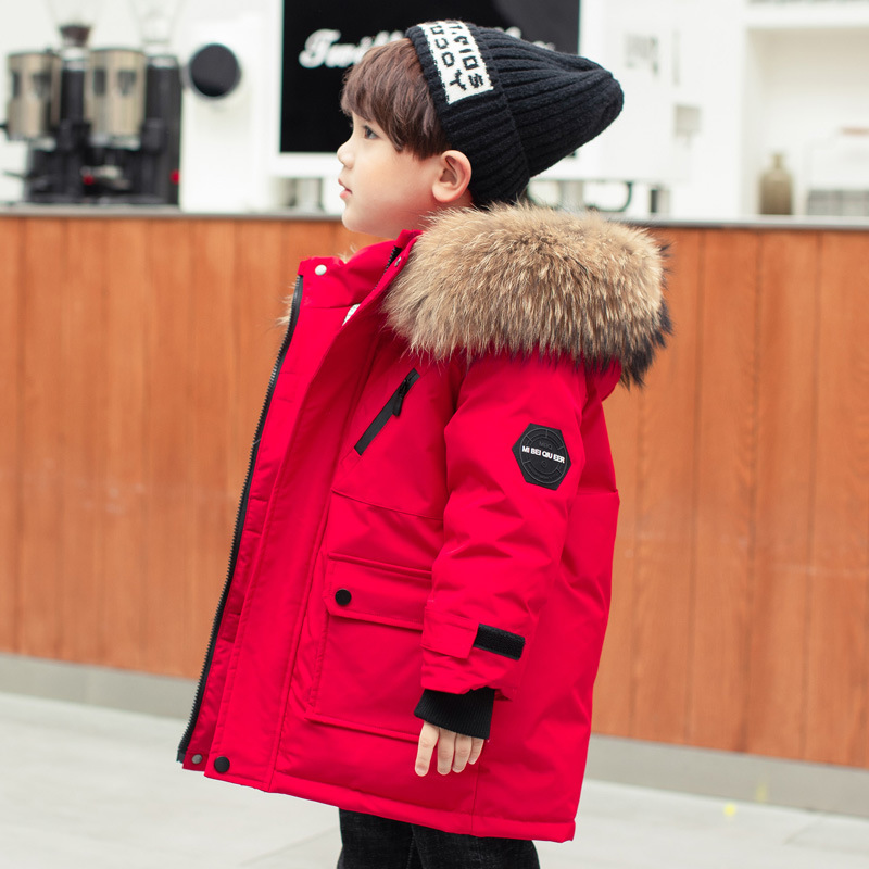 아동용 다운 재킷 남아용 중간 길이 겨울옷 2025 신상 남아용 중소형 아동복 세련된 겨울 두꺼운 코트