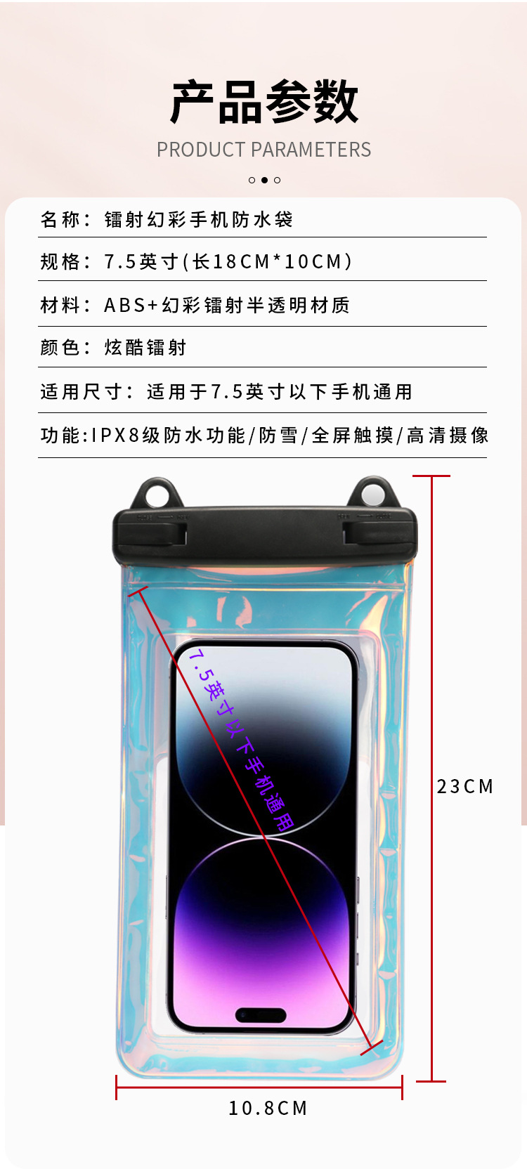 시원한 레이저 매직 휴대 전화 방수 가방 라이더 형제 비 방지 장비 끈 방수 커버 터치 스크린 수영스토어 가기