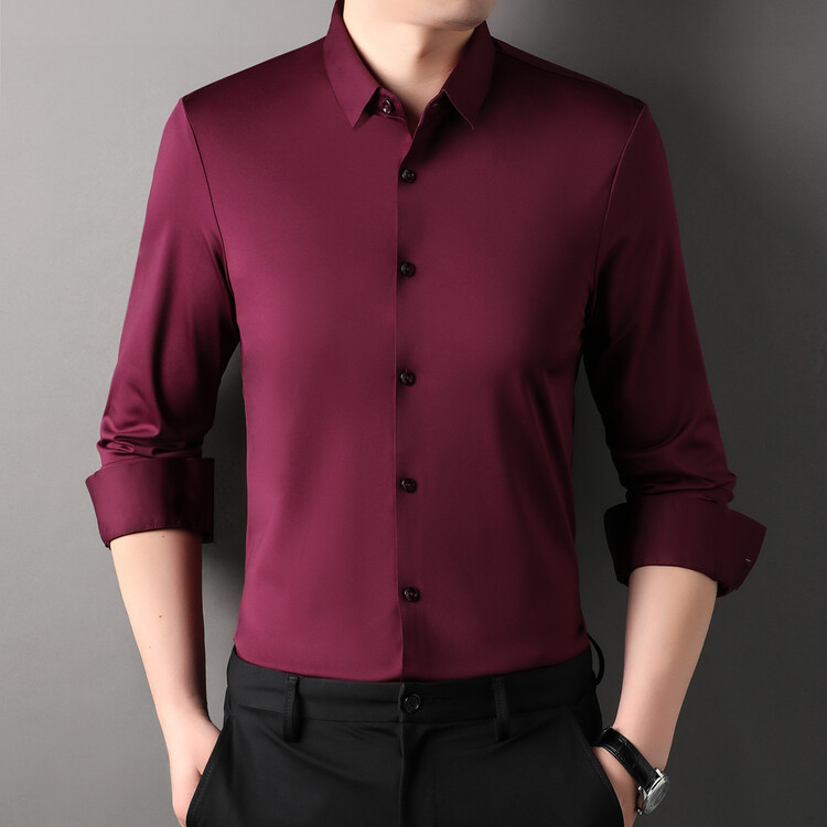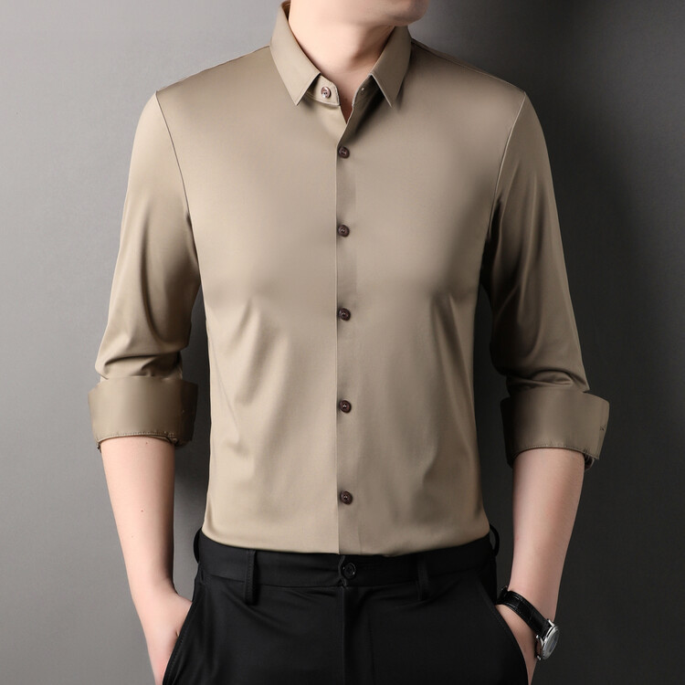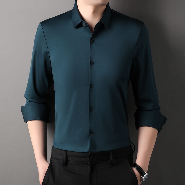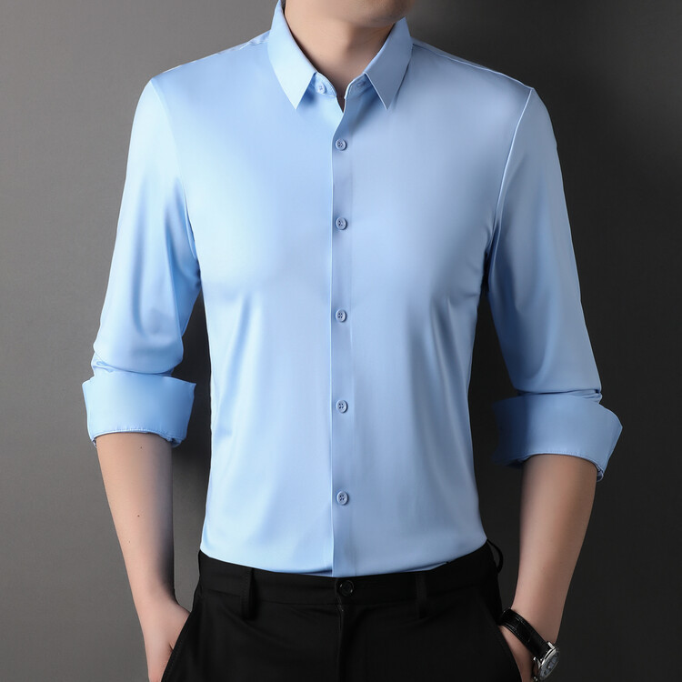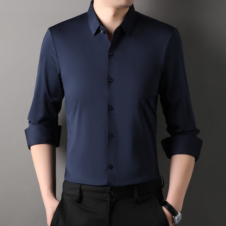 [14 색] 새로운 봄과 가을 남자 긴팔 셔츠 단색 중년 비 다림질 비즈니스 원피스 셔츠