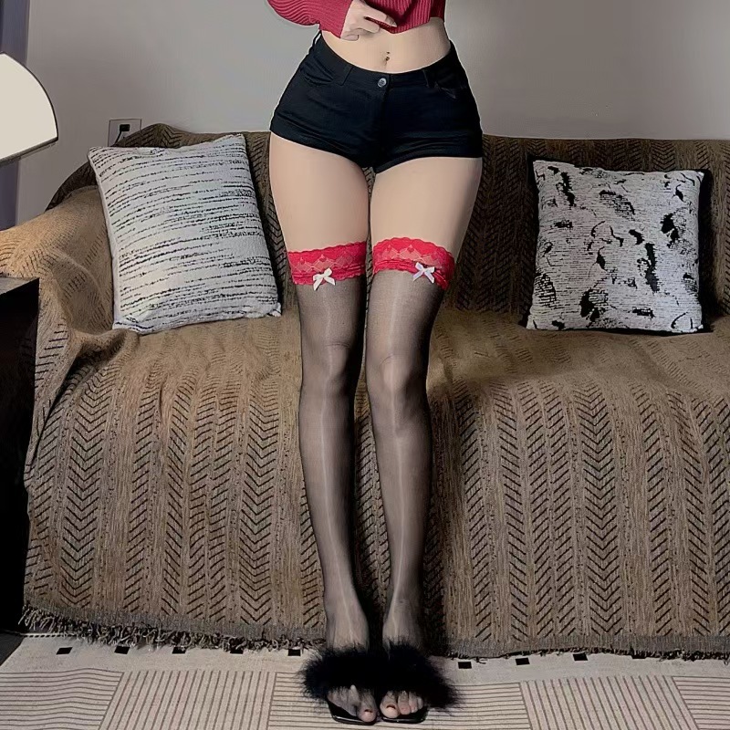 진페이 오로라 울트라 얇은 레이스 활 대조 컬러 반 무릎 양말 유성 모양의 스타킹 여성을위한 재미있는 스타킹스토어 가기
