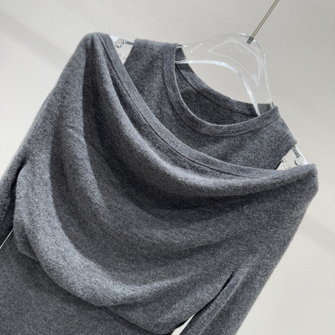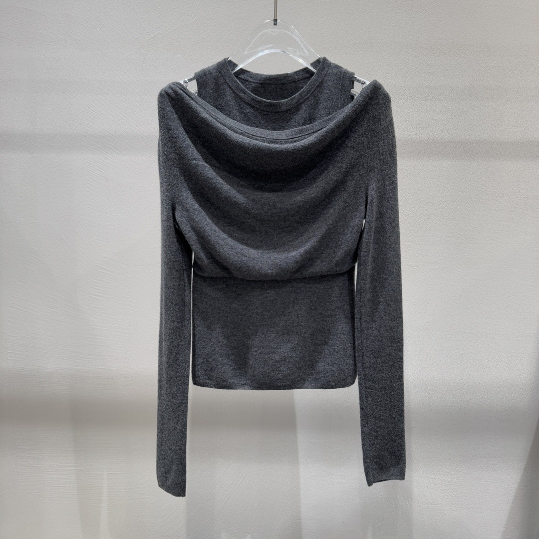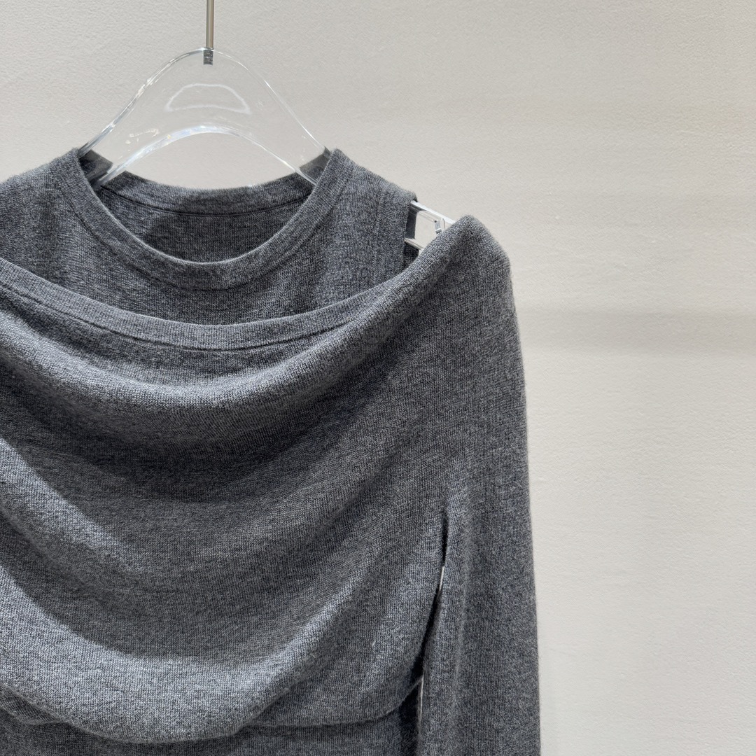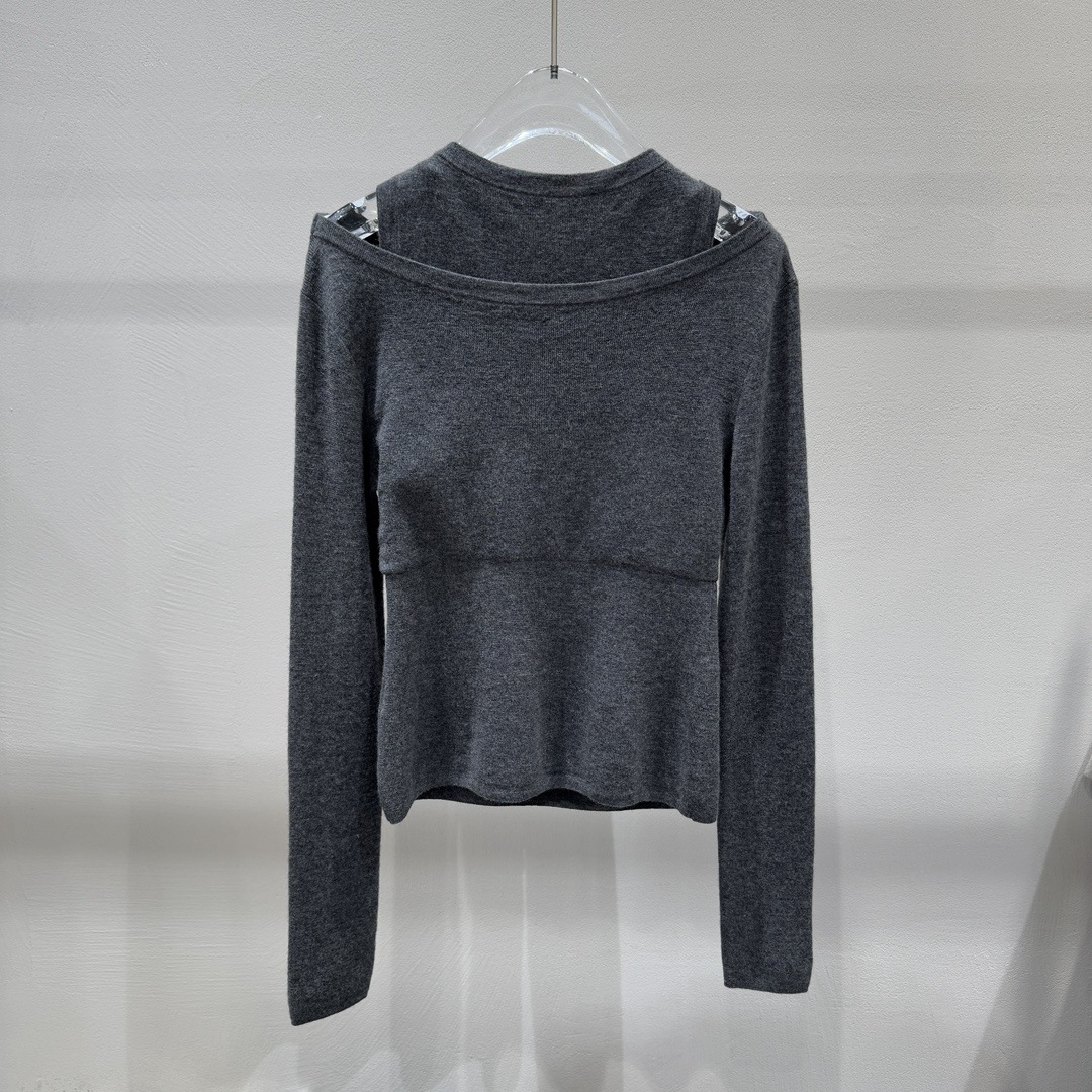 2025년 가을 신상 여성복, 우아한 긴팔 스모키 그레이 페이크 투피스 니트 스웨터 상의 여성용 50118001스토어 가기