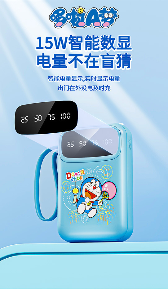 도라에몽 충전 보물 셀프 벨트 라인 3c 고속 충전 1W 대용량 가상 디지털 디스플레이 소형 휴대용 모바일 전원 공급 장치스토어 가기