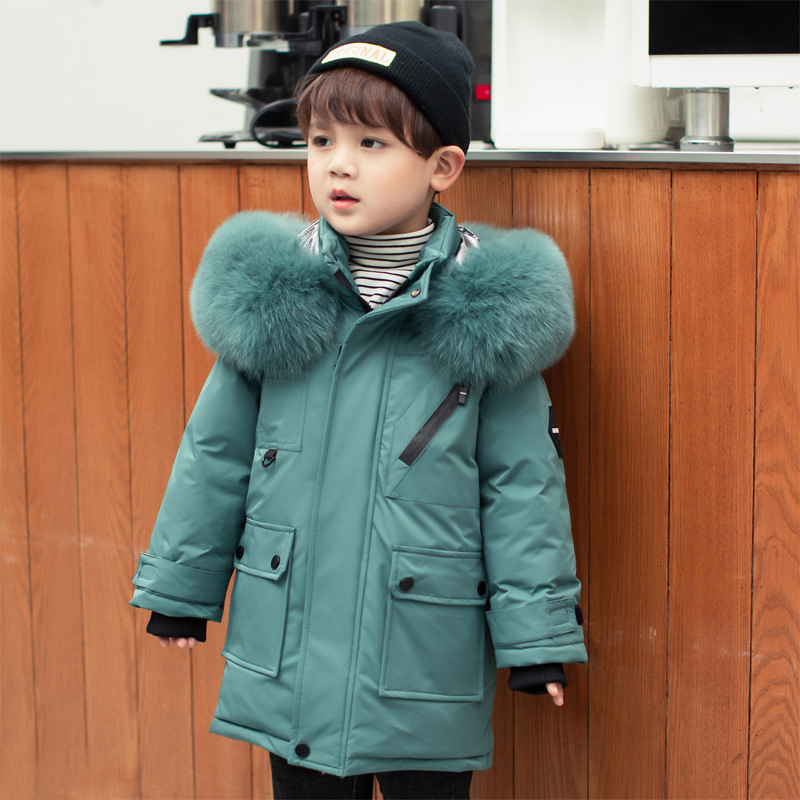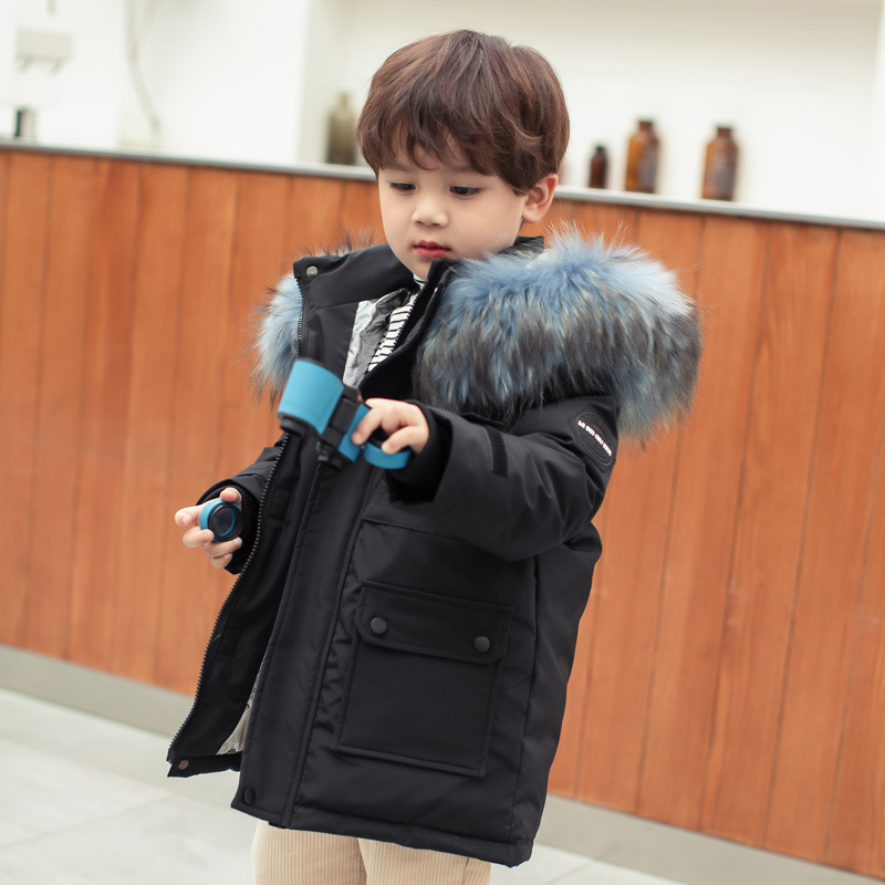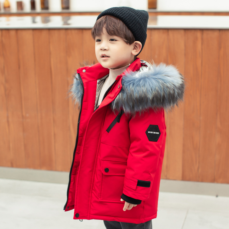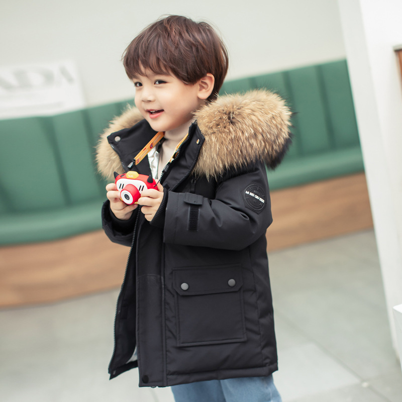 아동용 다운 재킷 남아 중간 길이 2025년 신상 남아용 스타일리시한 흰색 오리털 아동복 두꺼운 코트