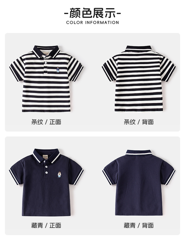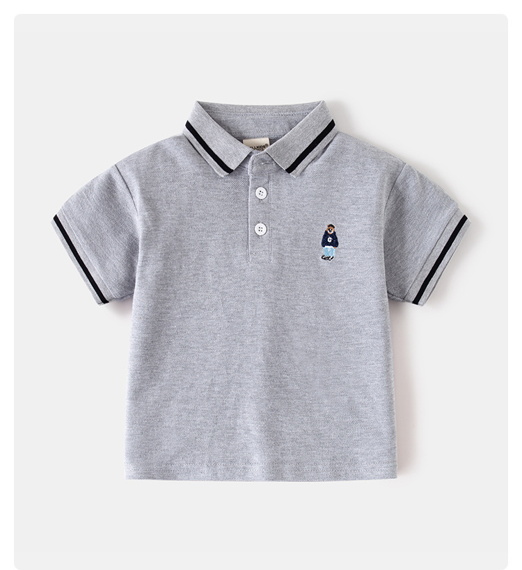 소년 짧은 소매 티셔츠 2025 새로운 어린이 자수 폴로 셔츠 아기 짧은 소매 탑 패션 만화 아동복 배치스토어 가기