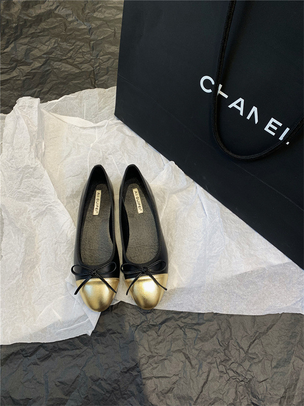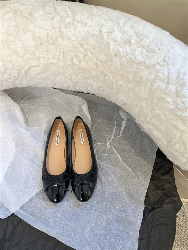 봄과 여름 2025 새로운 활 발레 플랫 얕은 입 신발 요정 스타일 부드러운 가죽 컬러 블록 우유 신발스토어 가기