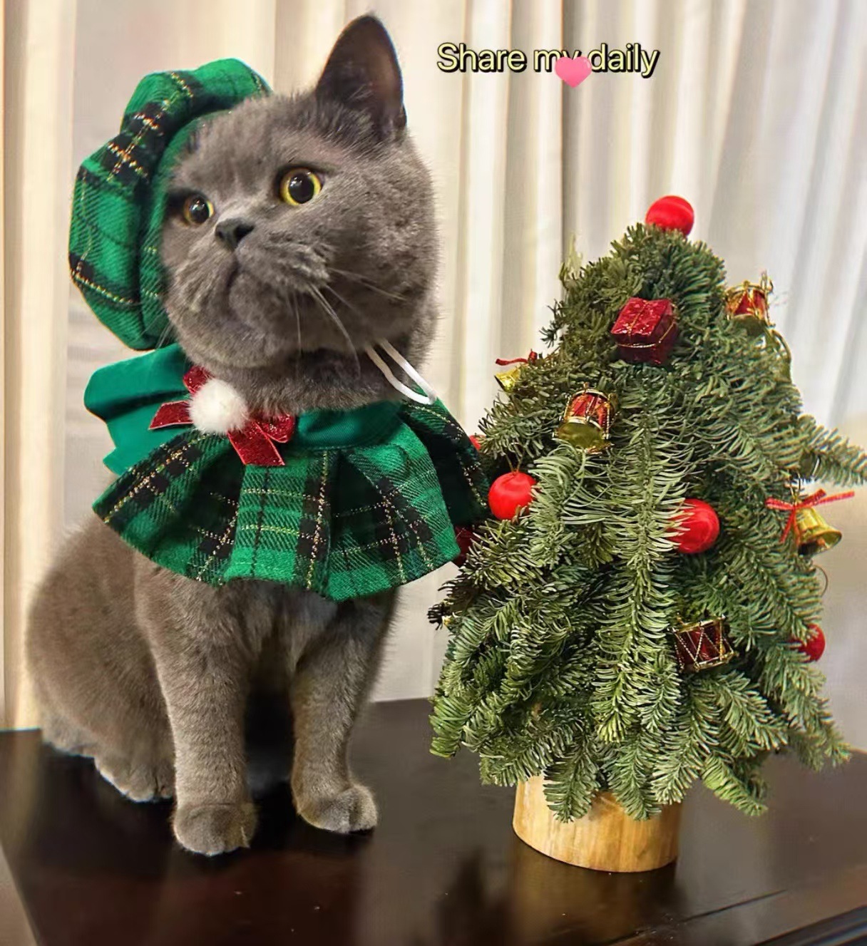 크리스마스 고양이 개 팔각형 모자 영국 스타일 버드 모자 개 목걸이 턱받이 세트 애완 동물 장식 사진스토어 가기