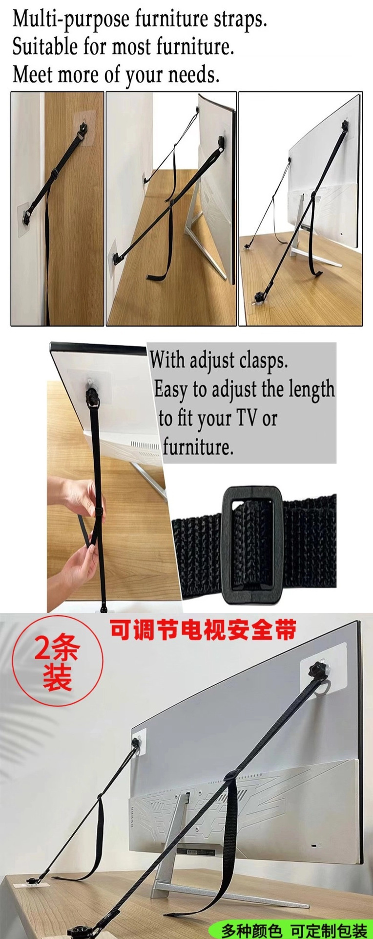 재고 도매, 해외 배송 가능, 조절 가능한 TV 안전 벨트, 캐비닛/옷장 넘어짐 방지 벨트, 책상/스크린 방진 벨트, 넘어짐 방지스토어 가기