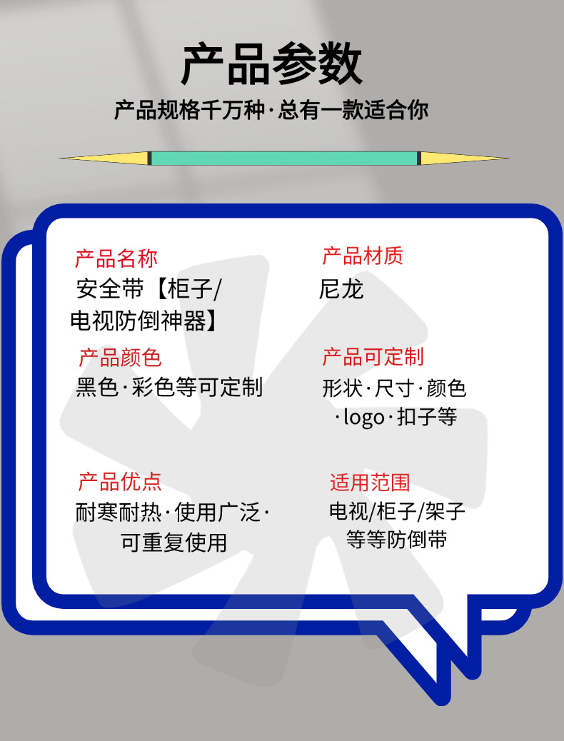 재고 도매, 해외 배송 가능, 조절 가능한 TV 안전 벨트, 캐비닛/옷장 넘어짐 방지 벨트, 책상/스크린 방진 벨트, 넘어짐 방지