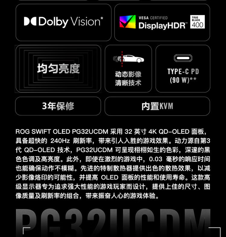 PG32UCDM 슈퍼 신 32 "OLED 디스플레이 4K 240Hz ROG E-스포츠 G-sync 0.03msGT스토어 가기