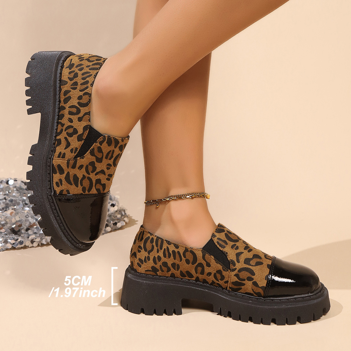 대외 무역 플러스 사이즈 영국 스타일 봄과 가을 새로운 레오파드 무늬 바느질 로퍼 올 매치 두꺼운 밑창 유행 빈티지 가죽 신발