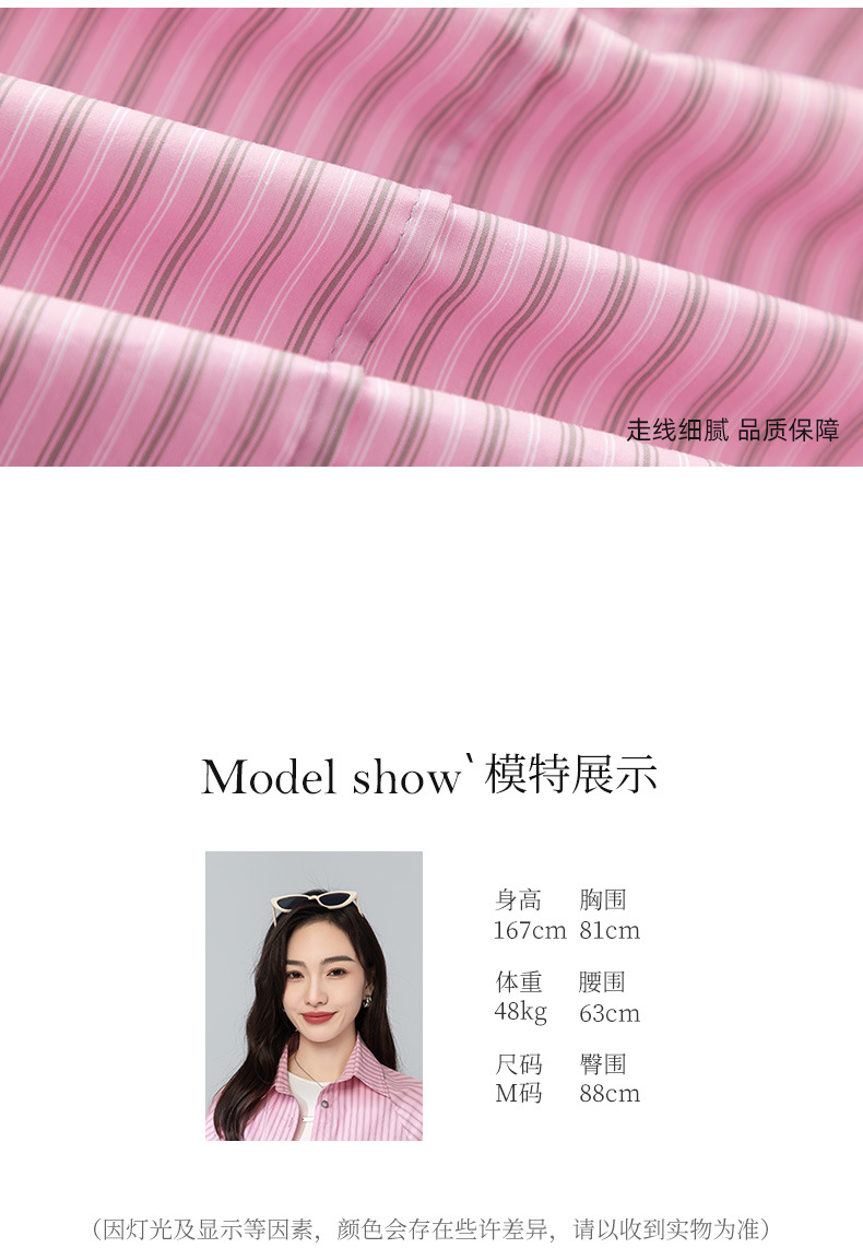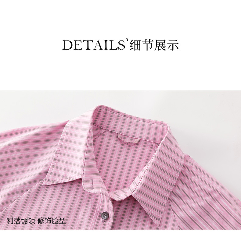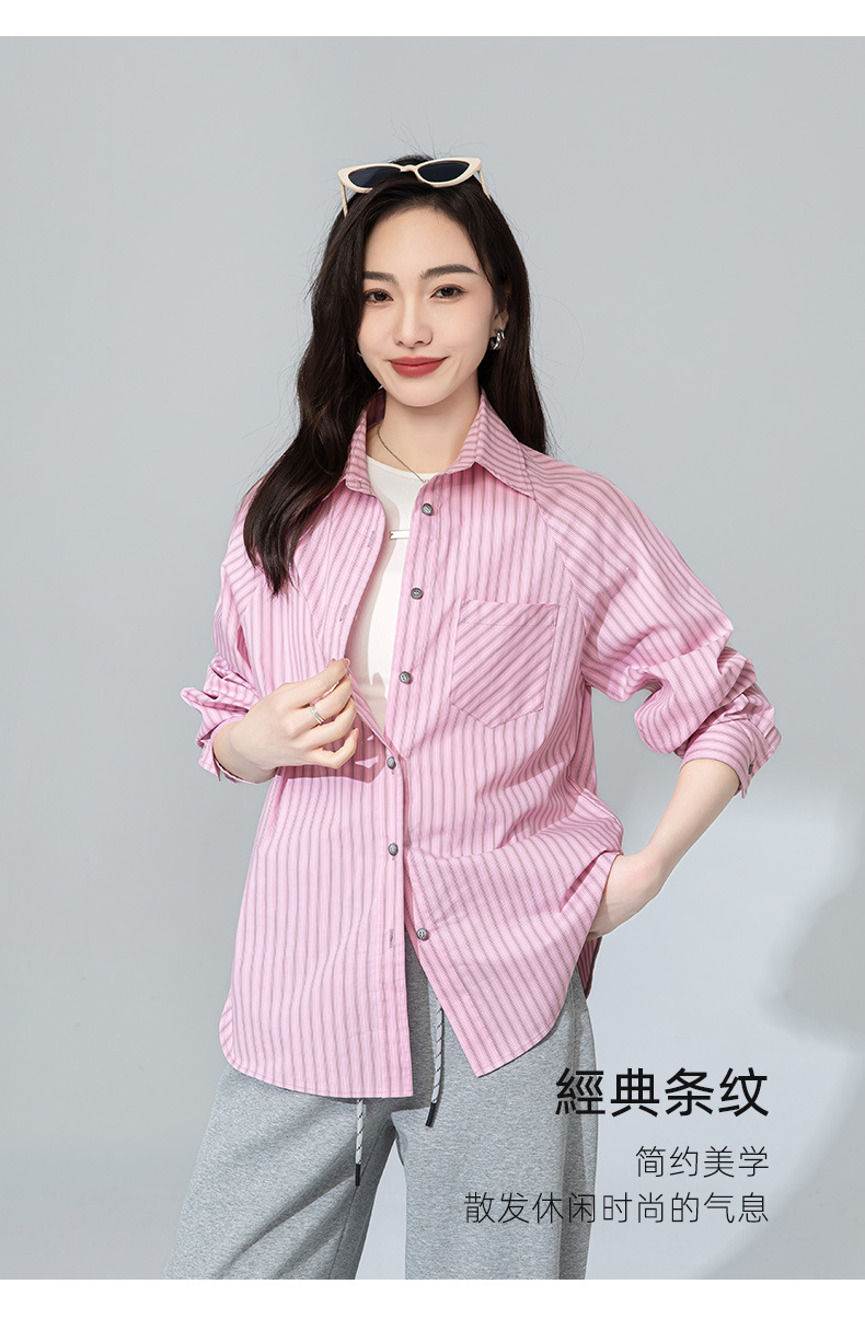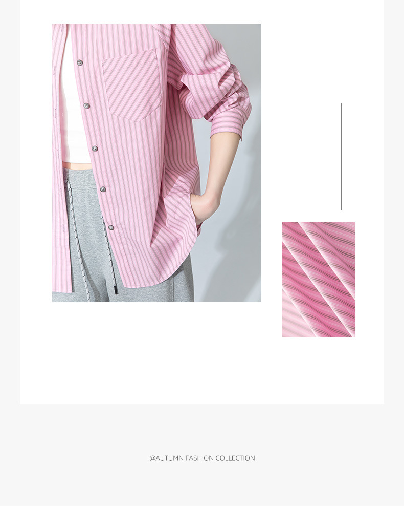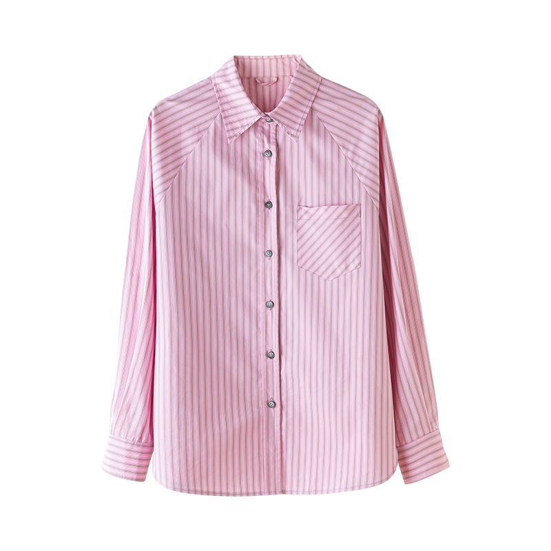 Xinge 이른 봄 셔츠 코트 여성의 새로운 디자인 센스 니쉬 핑크 스트라이프 스택 온 느슨한 게으른 스타일 긴팔 탑