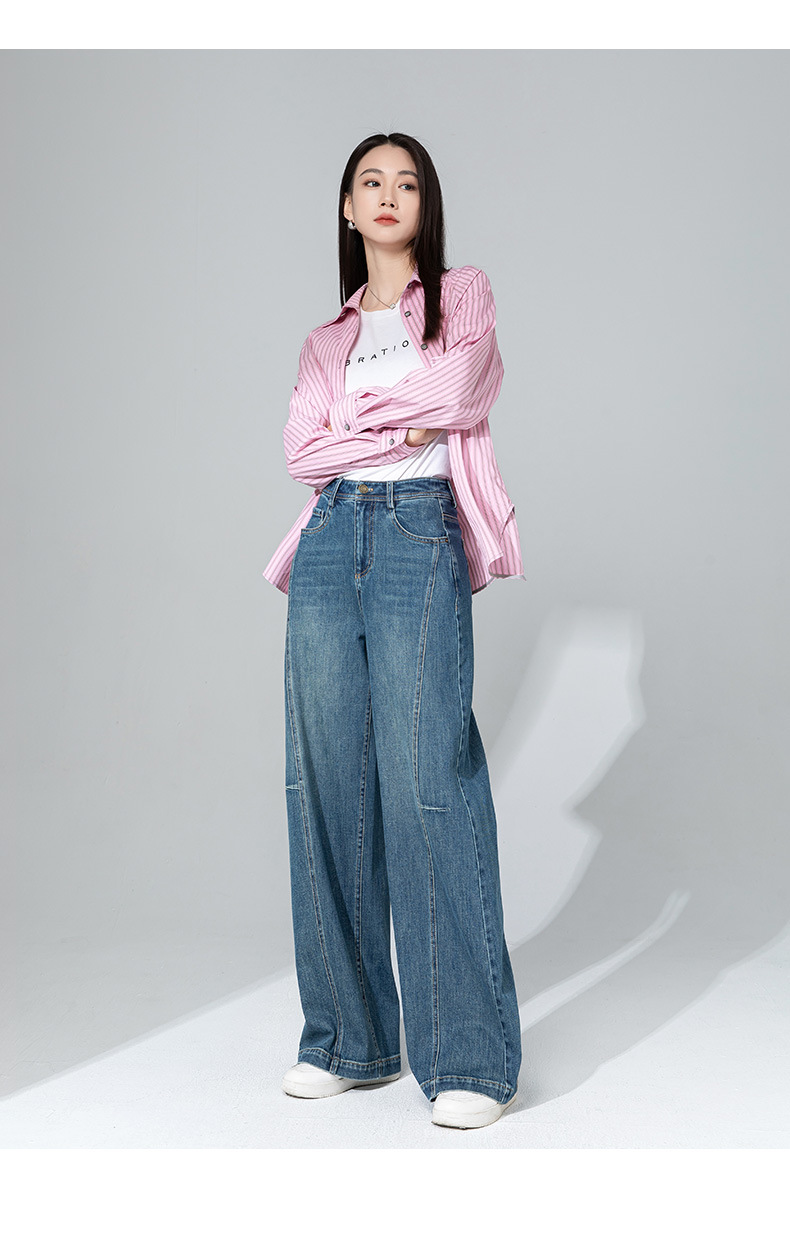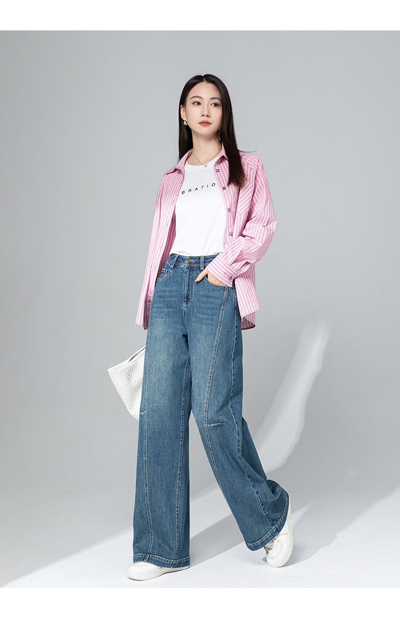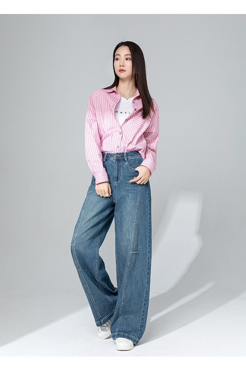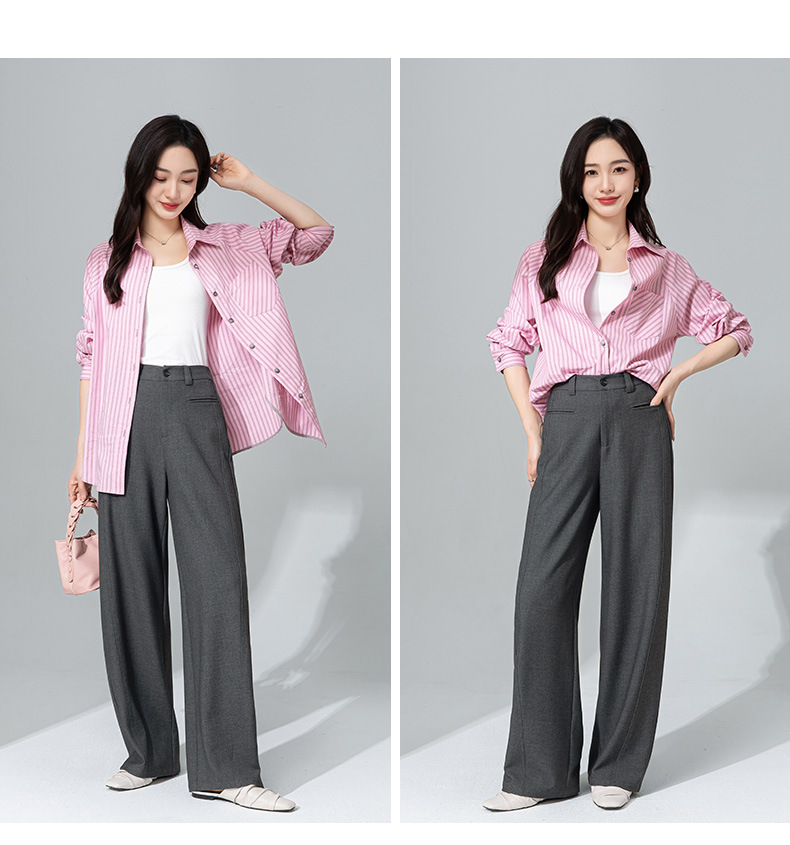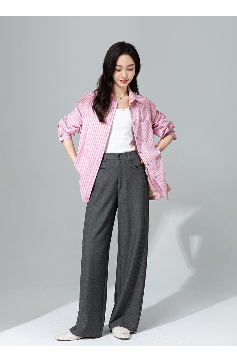 Xinge 이른 봄 셔츠 코트 여성의 새로운 디자인 센스 니쉬 핑크 스트라이프 스택 온 느슨한 게으른 스타일 긴팔 탑