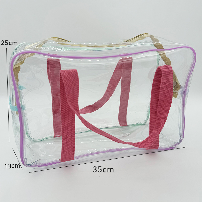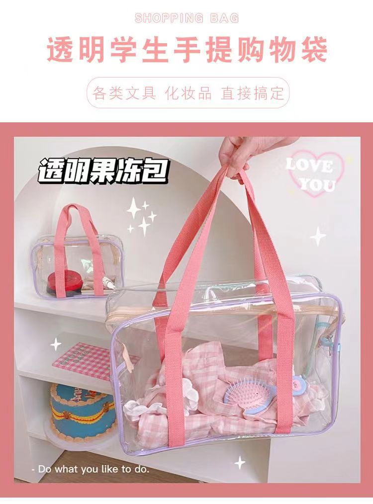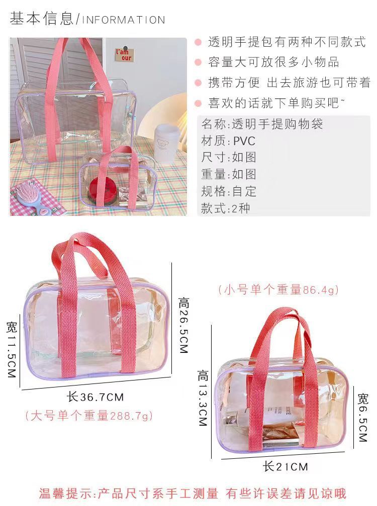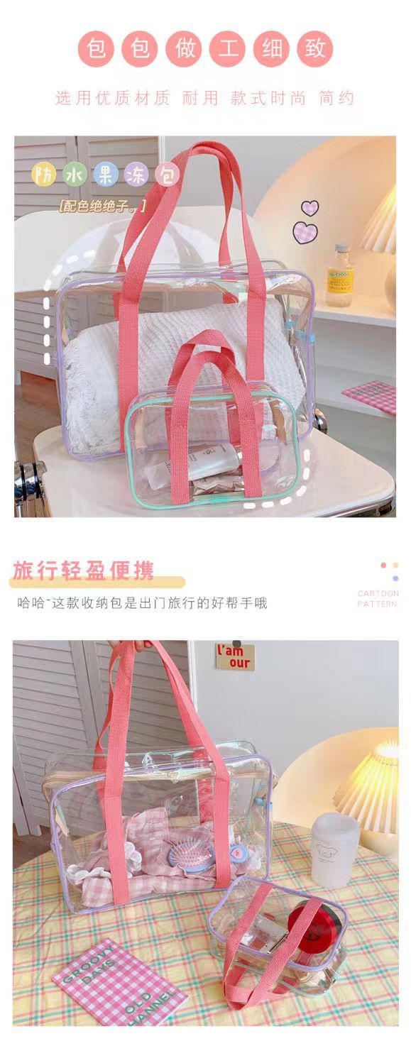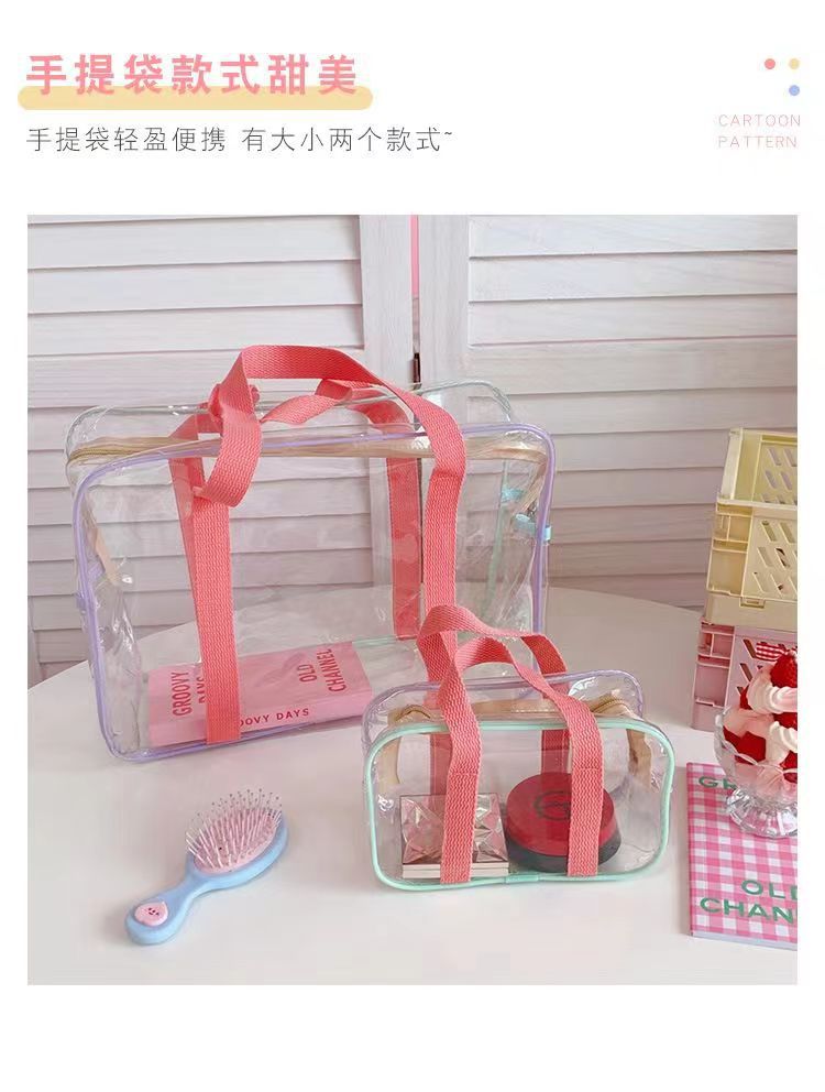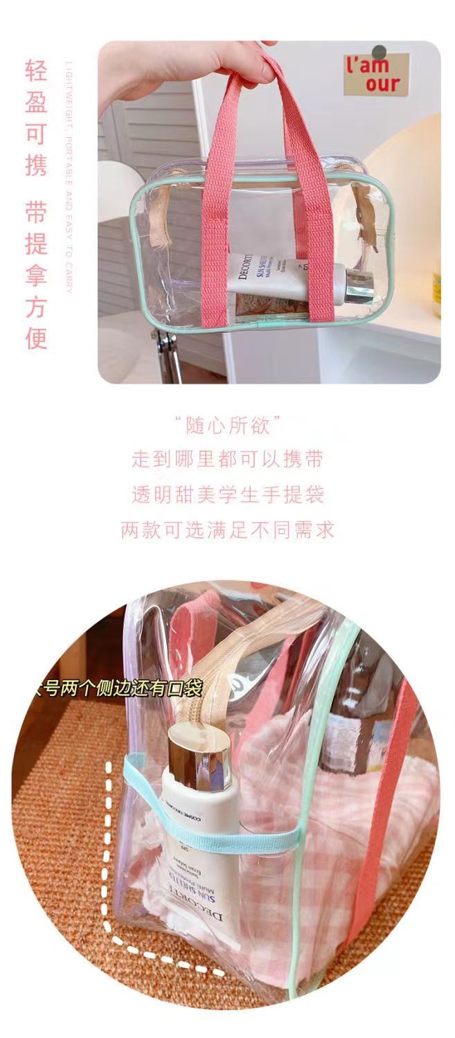한국 버전 크림 컬러 대용량 pvc 수영 투명 물 세척 가방 비치 백 숄더백 보관 가방스토어 가기