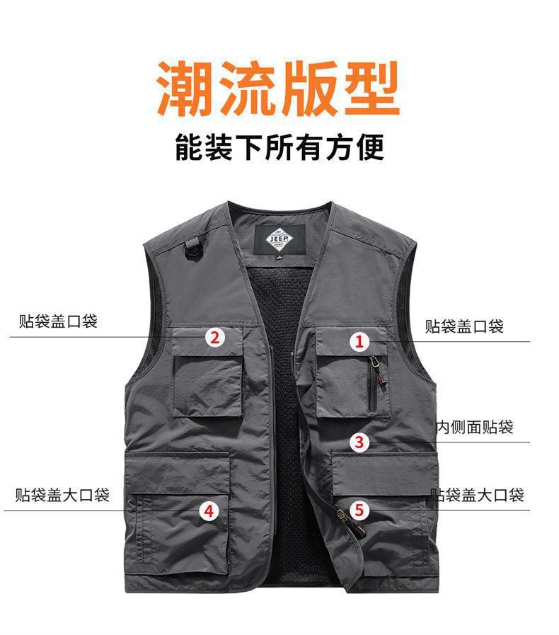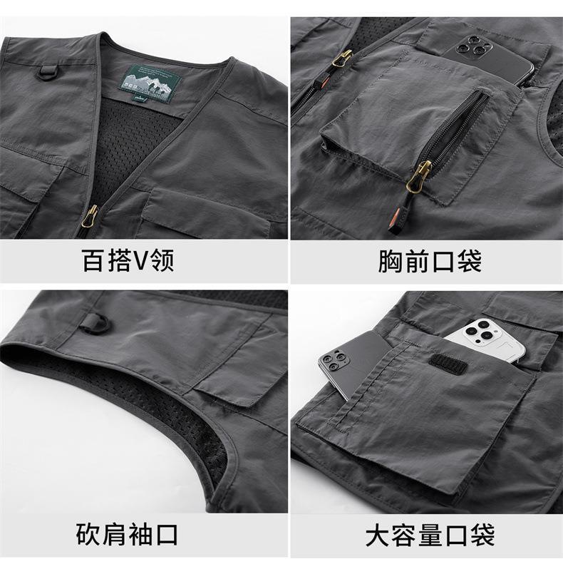 조끼 남자의 봄과 가을 멀티 백 툴링 어깨 조끼 야외 느슨한 등산 사진 빠른 건조 조끼 낚시 세트 2209