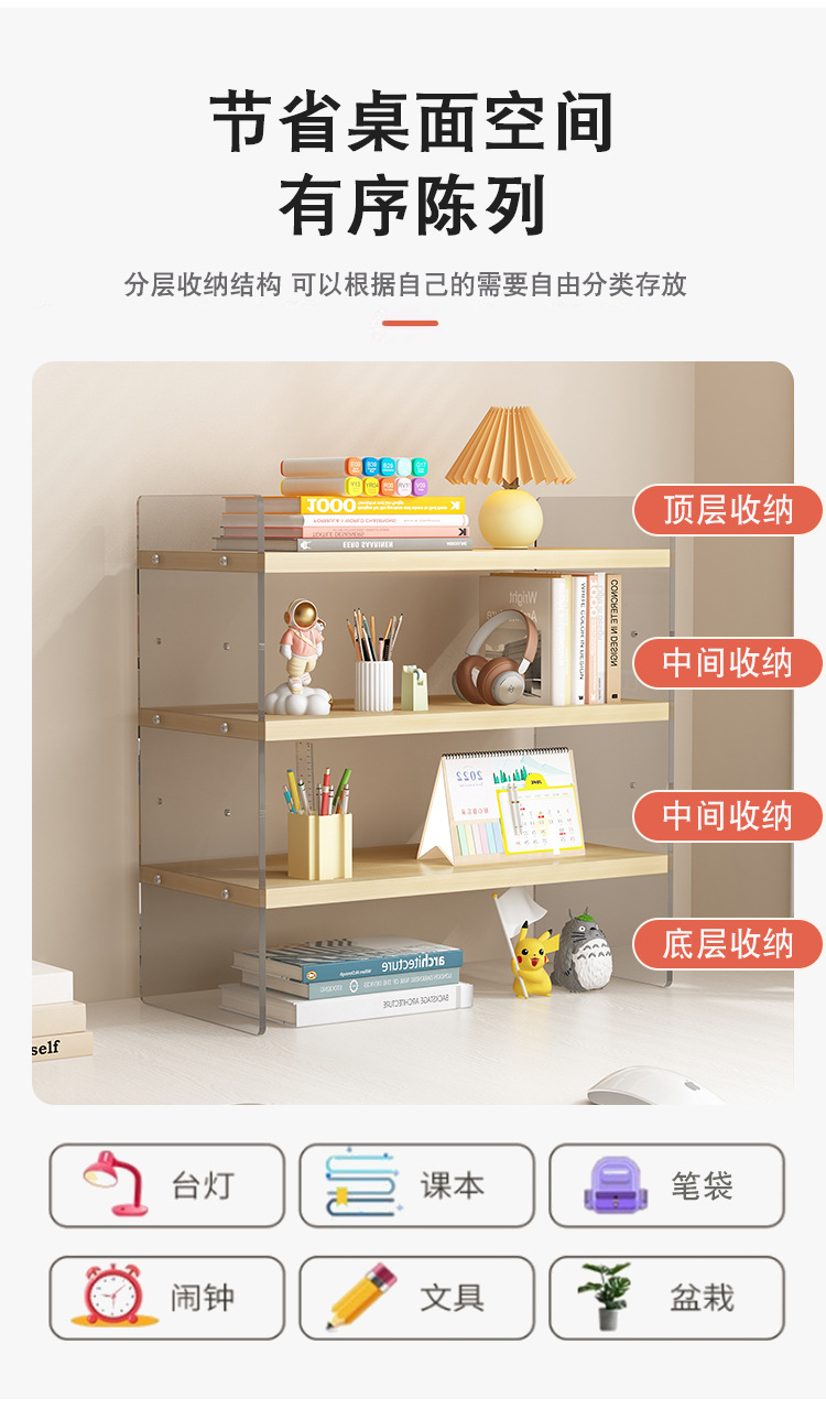 데스크탑 아크릴 스토리지 랙 데스크탑 메이크업 랙 데스크 학생 기숙사 사무실 다층 조정 가능한 스토리지 마무리