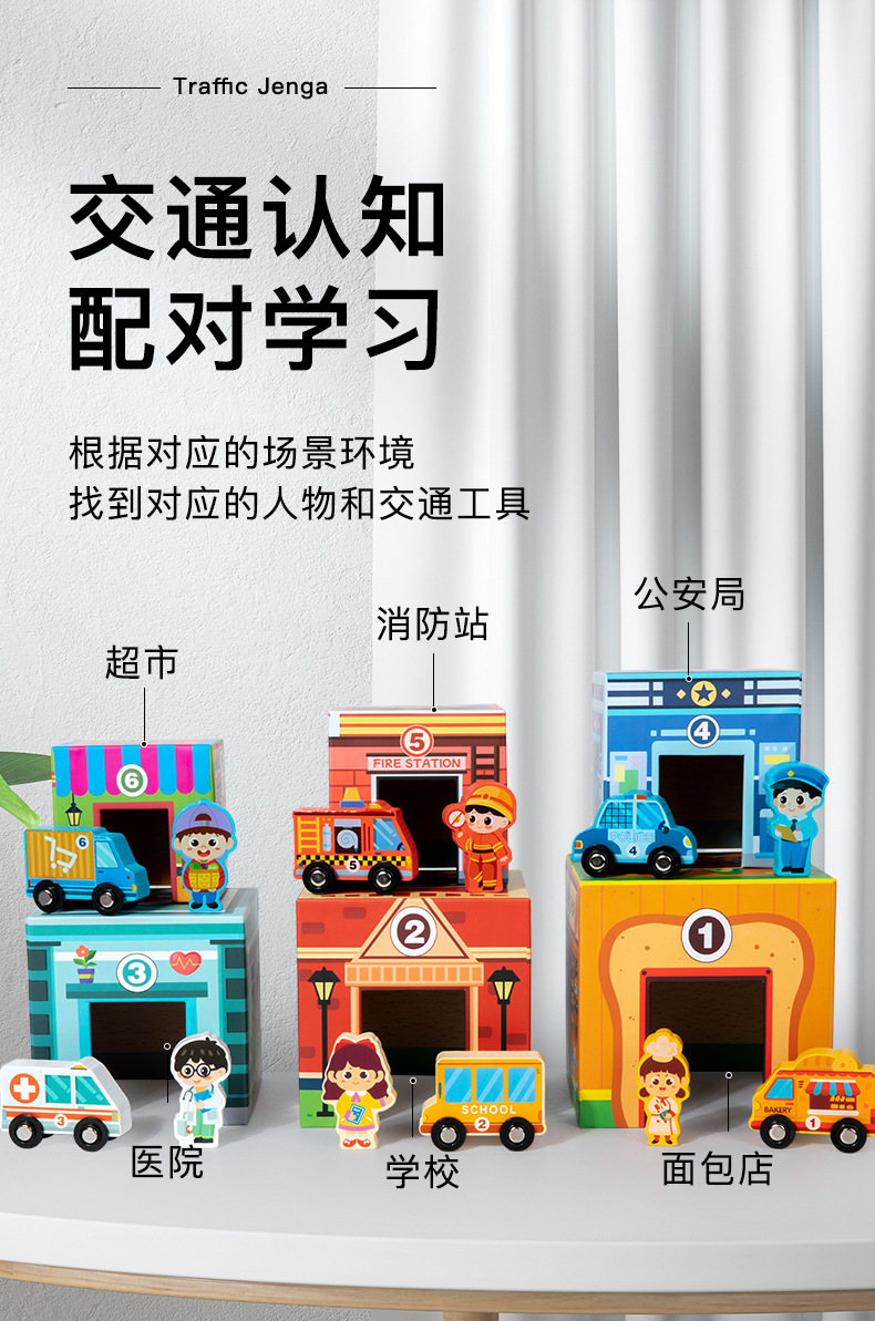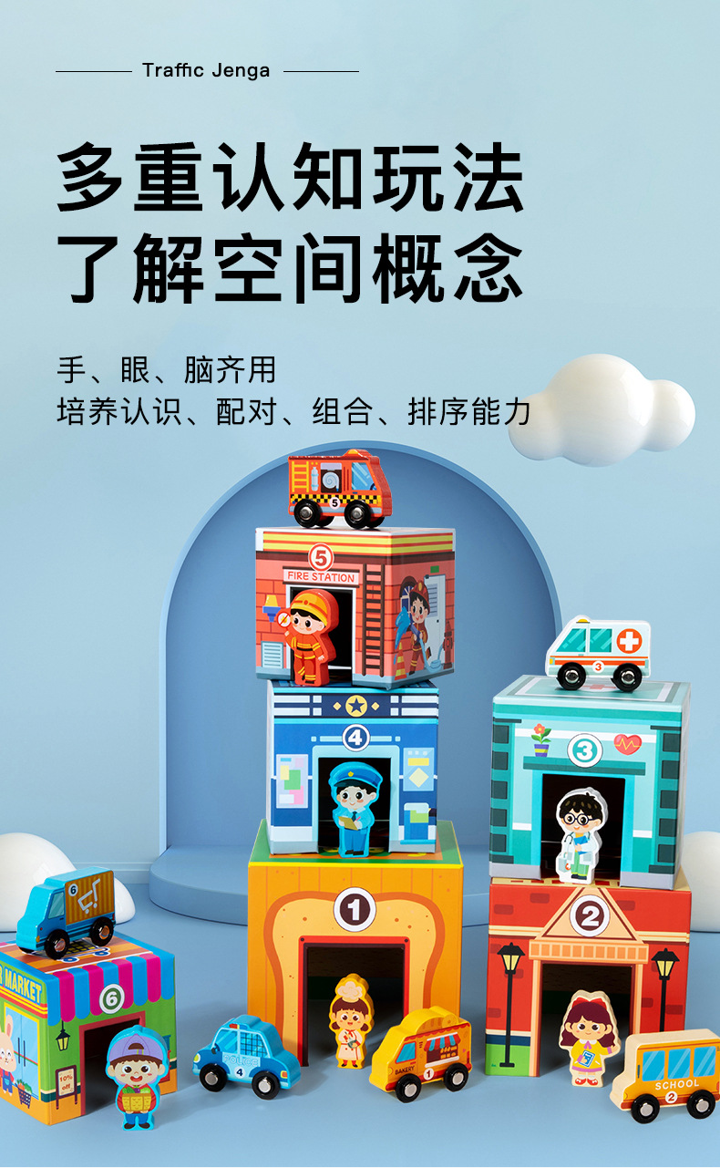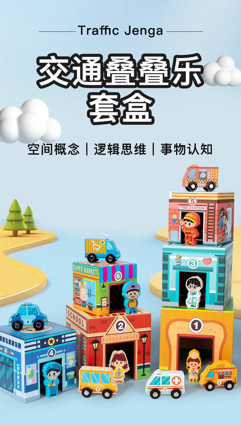 나무 장난감 스택 음악 조기 교육 운동 논리적 사고 손 개발 흥미있는 쌓인 높은 교통 장면 세트 박스스토어 가기