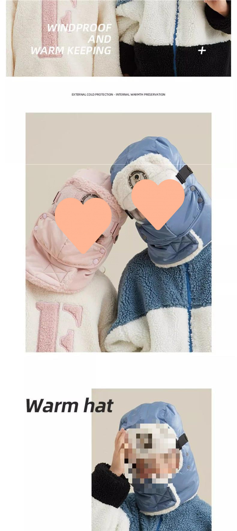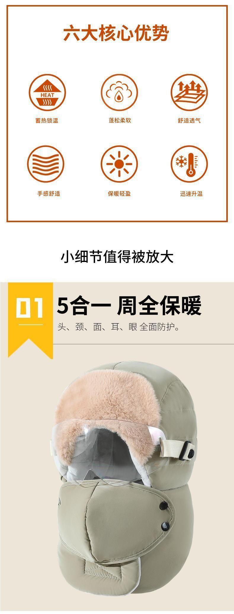 • 5-in-1 따뜻한 모자: [모자 + 마스크 + 접안렌즈 방지]