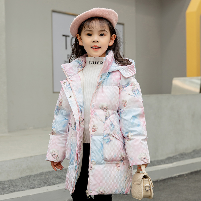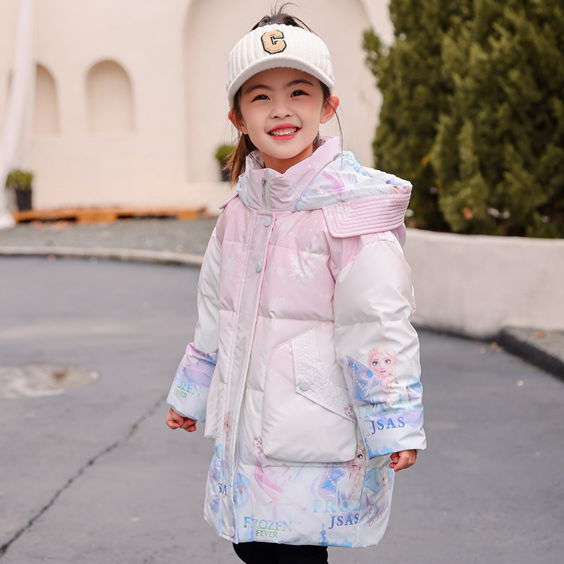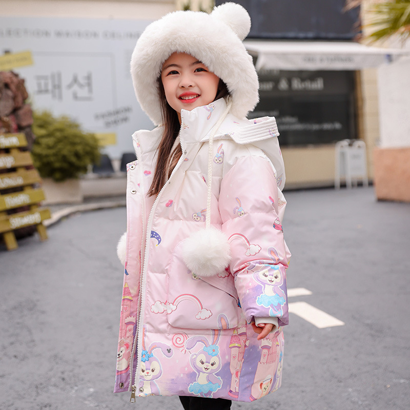 여아용 중간 길이 다운 재킷, 2025년 신상 한국 스타일, 세련된 화이트 덕다운 두꺼운 아동복스토어 가기