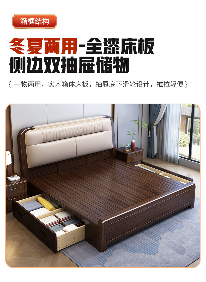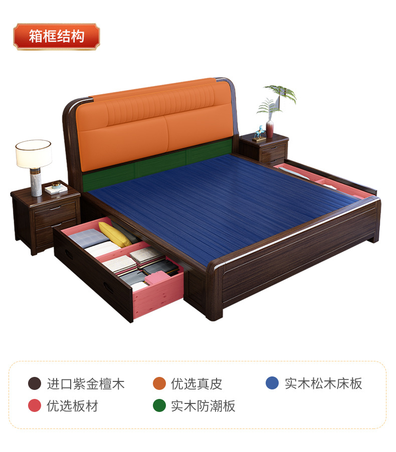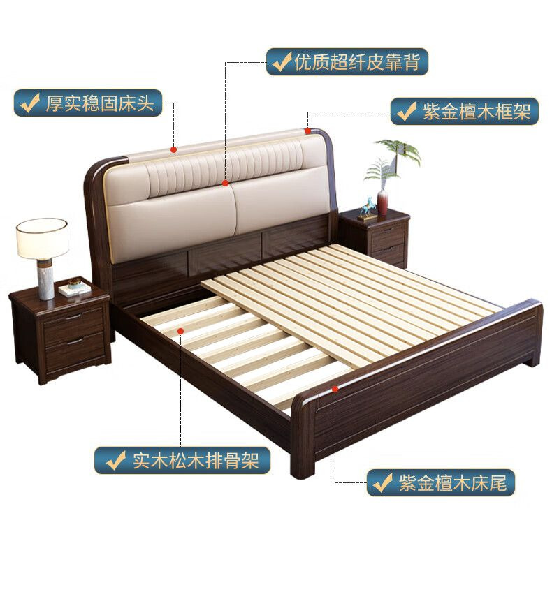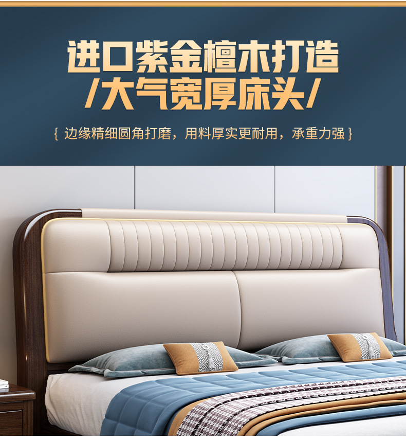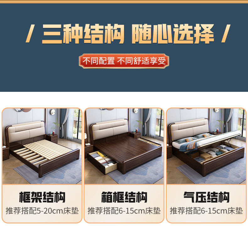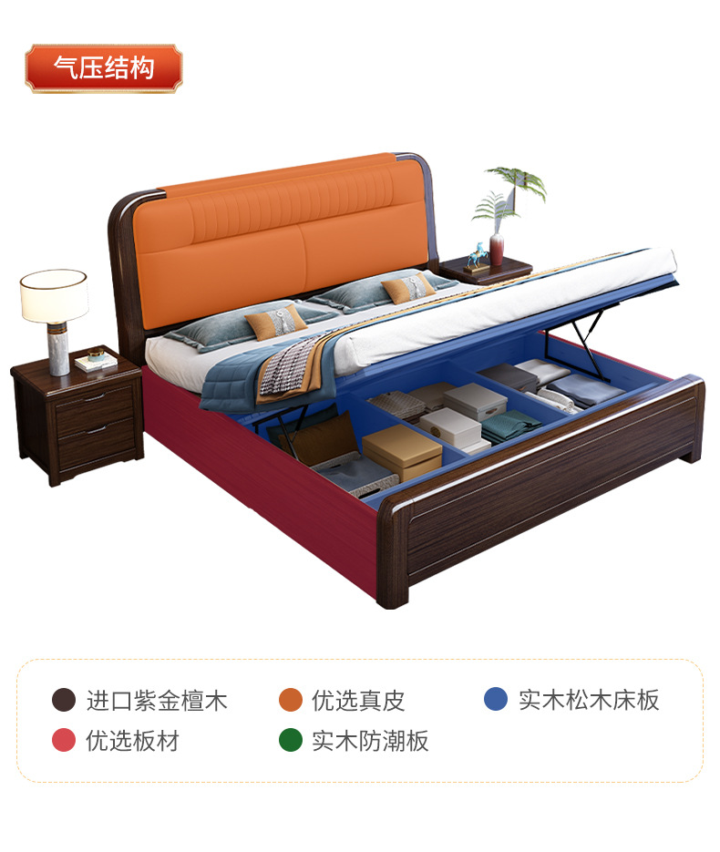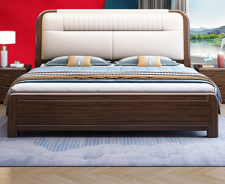 지진 샌달 우드 솔리드 우드 침대 1.8 m 현대 중국 더블 침대 가죽 소프트 백 마스터 침실 고급 보관 침대