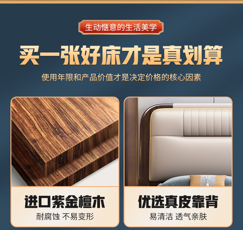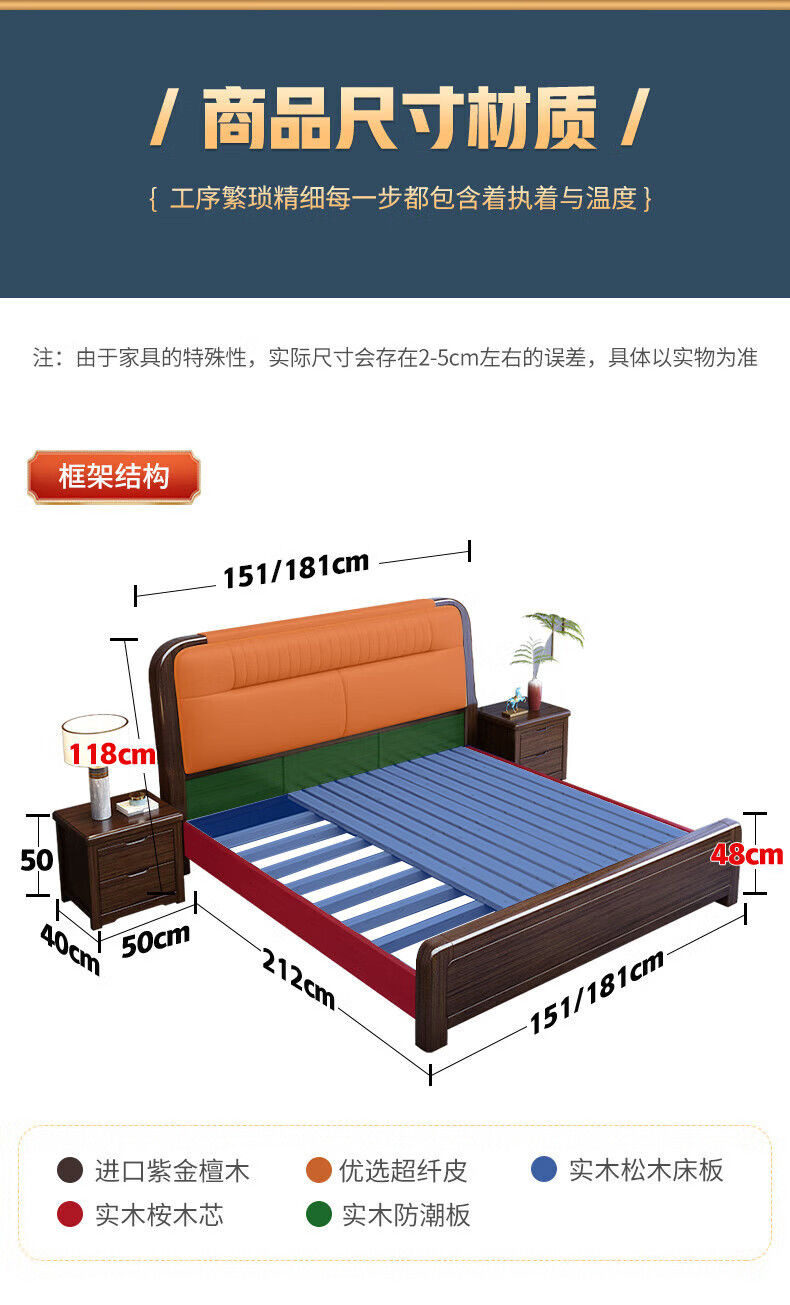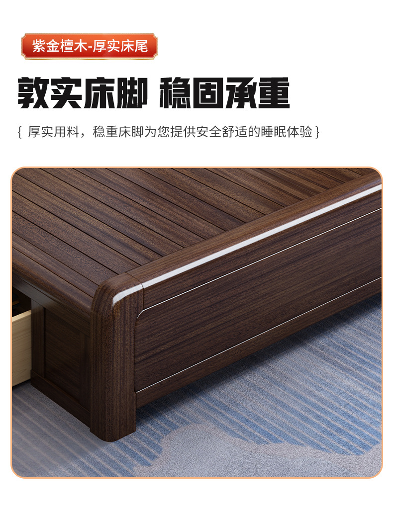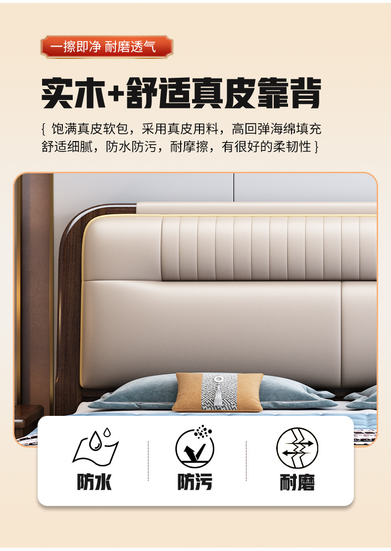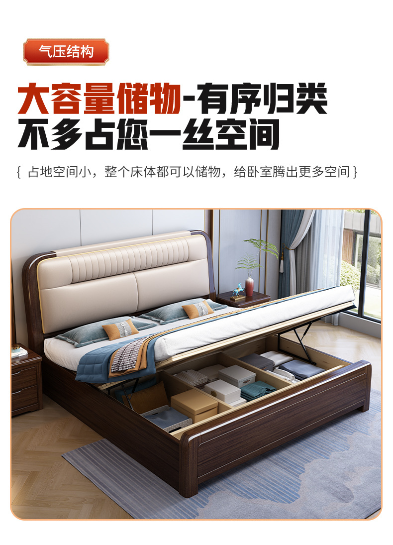 지진 샌달 우드 솔리드 우드 침대 1.8 m 현대 중국 더블 침대 가죽 소프트 백 마스터 침실 고급 보관 침대