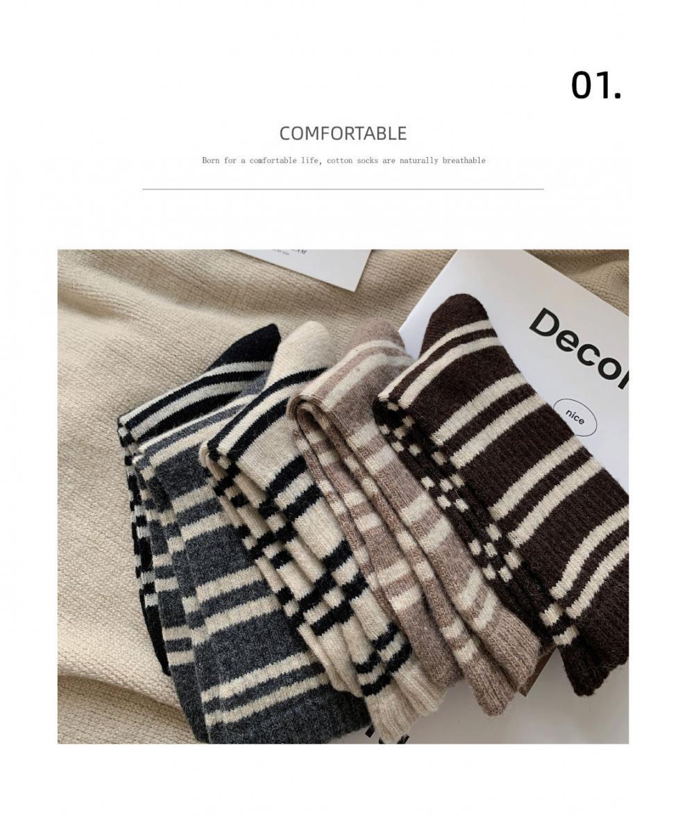 양말 여자 미드 튜브 코튼 양말 가을과 겨울 두꺼운 따뜻한 땀 흡수성 통기성 올 매치 일본 줄무늬 스포츠 남자 스타킹