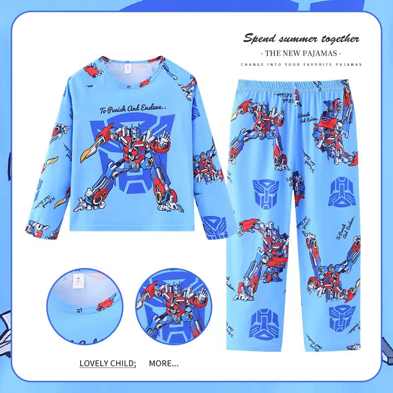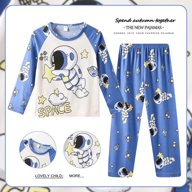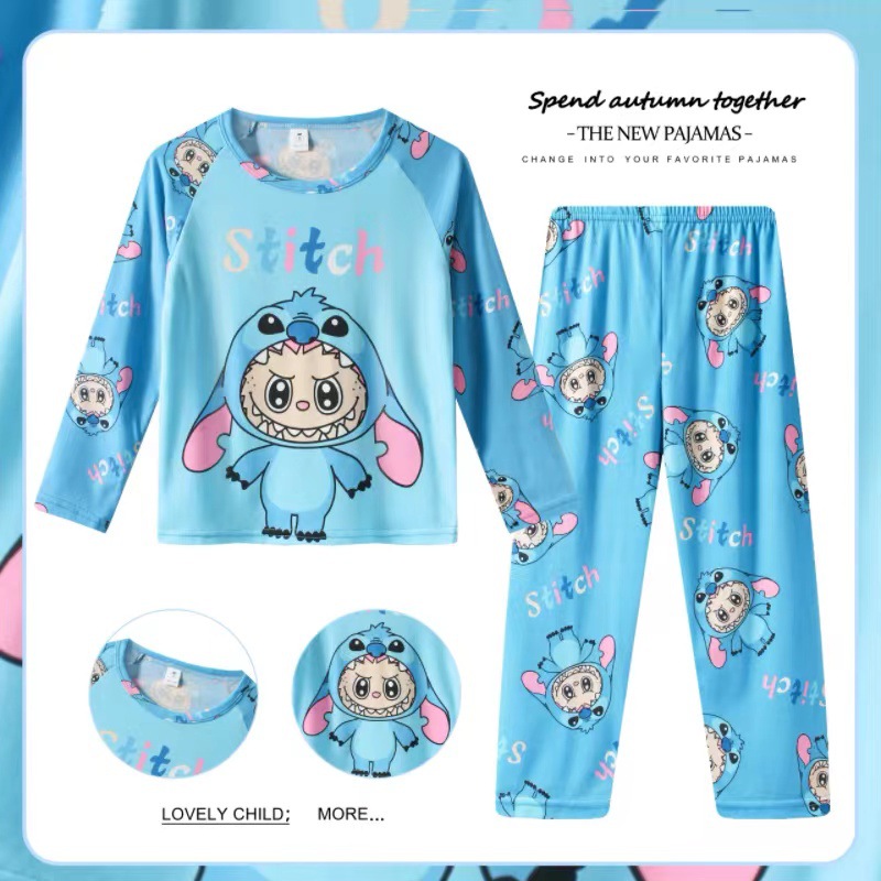 대외 무역 봄과 가을 어린이 잠옷 긴 소매 소년과 소녀 만화 크루 넥 얇은 스티치 에어컨 홈 의류 세트스토어 가기