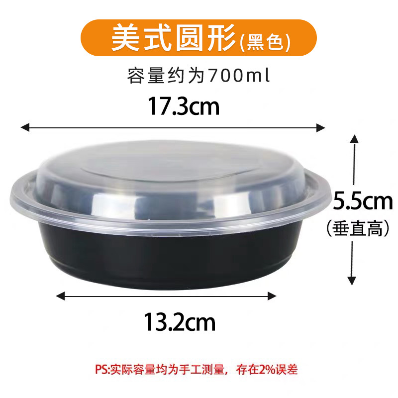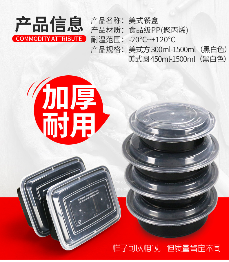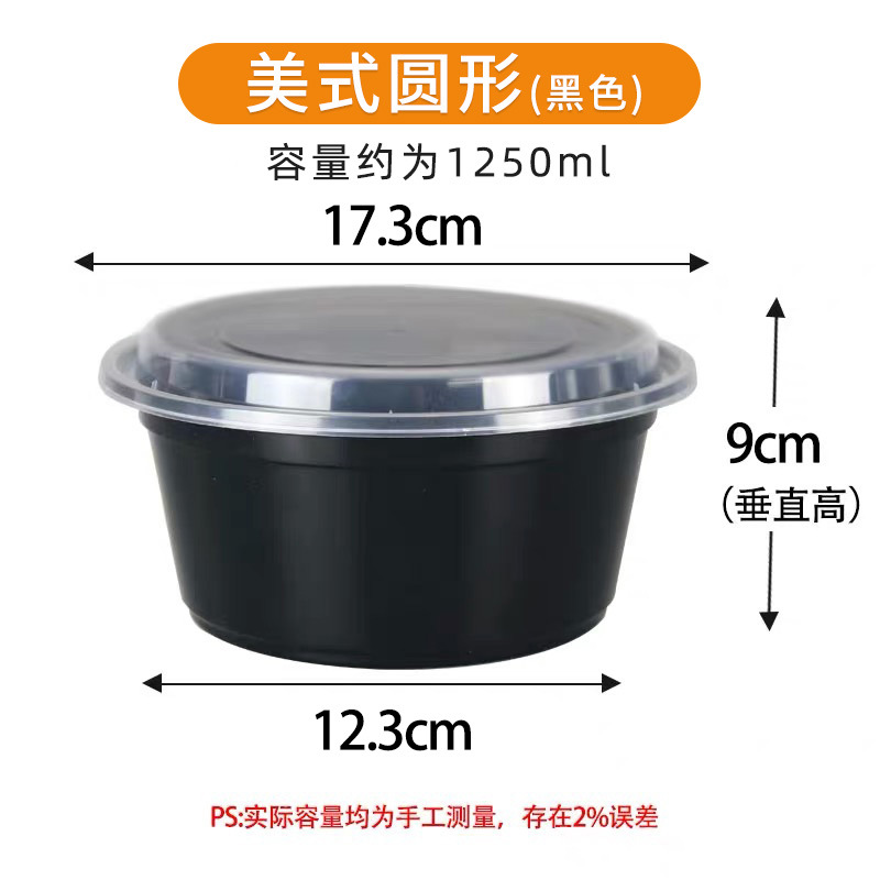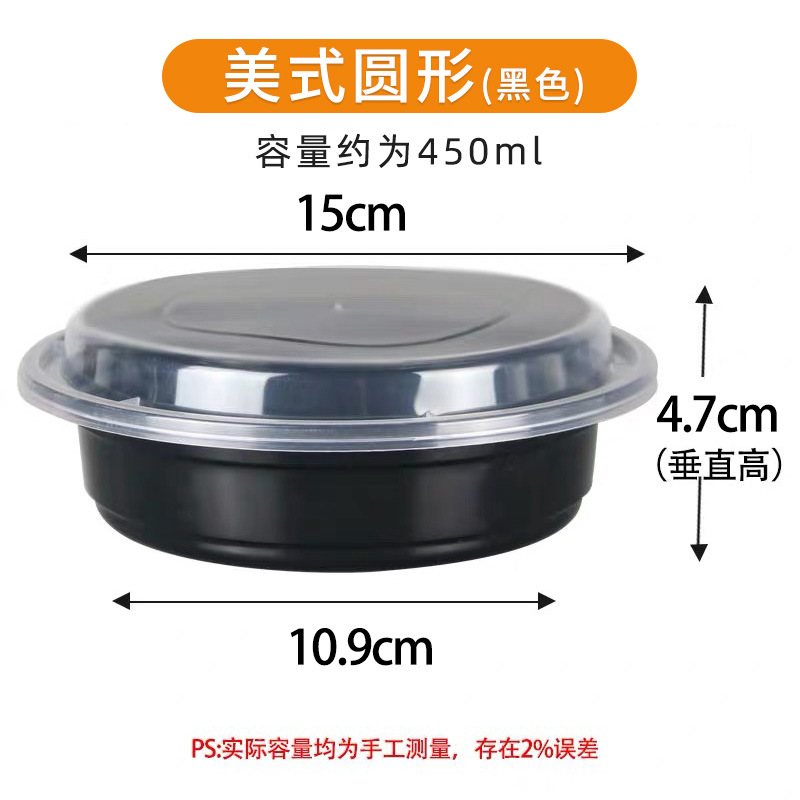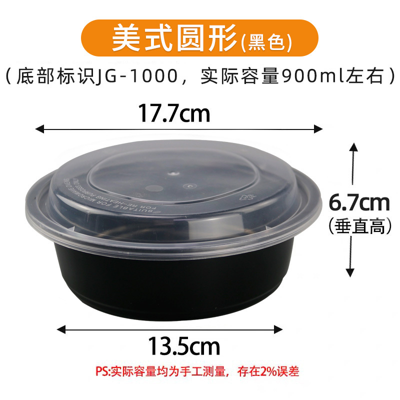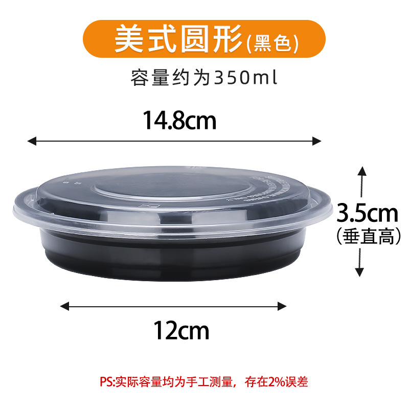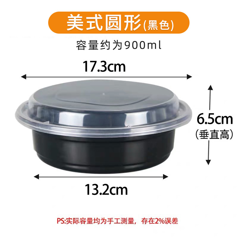 일회용 도시락 상자 미국 900ml 둥근 검은 색 두꺼운 뚜껑 도시락 직사각형 상업 테이크 아웃 상자