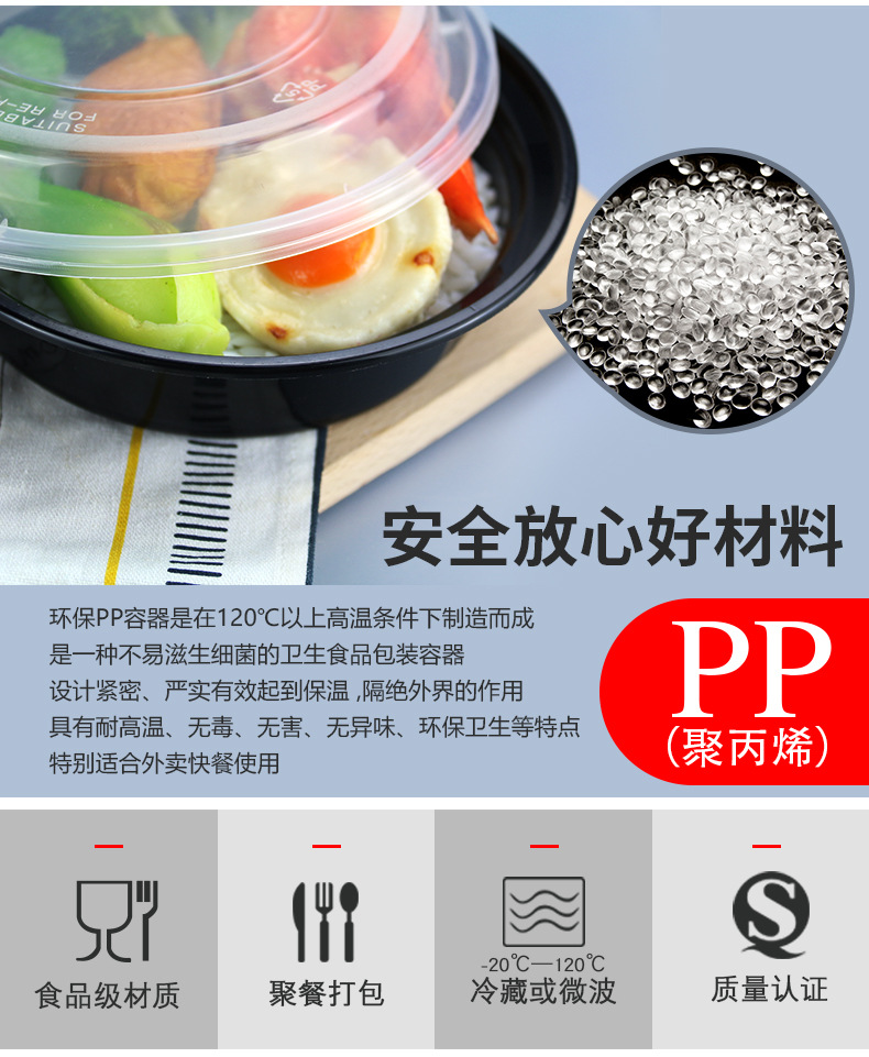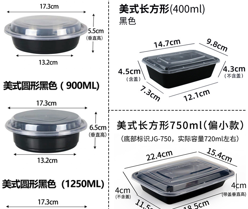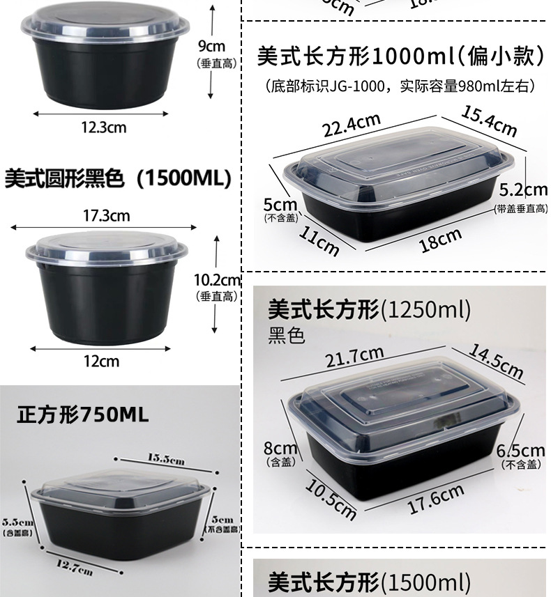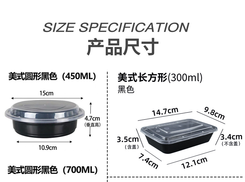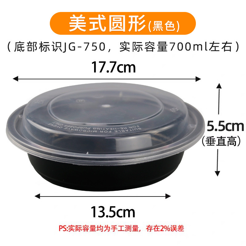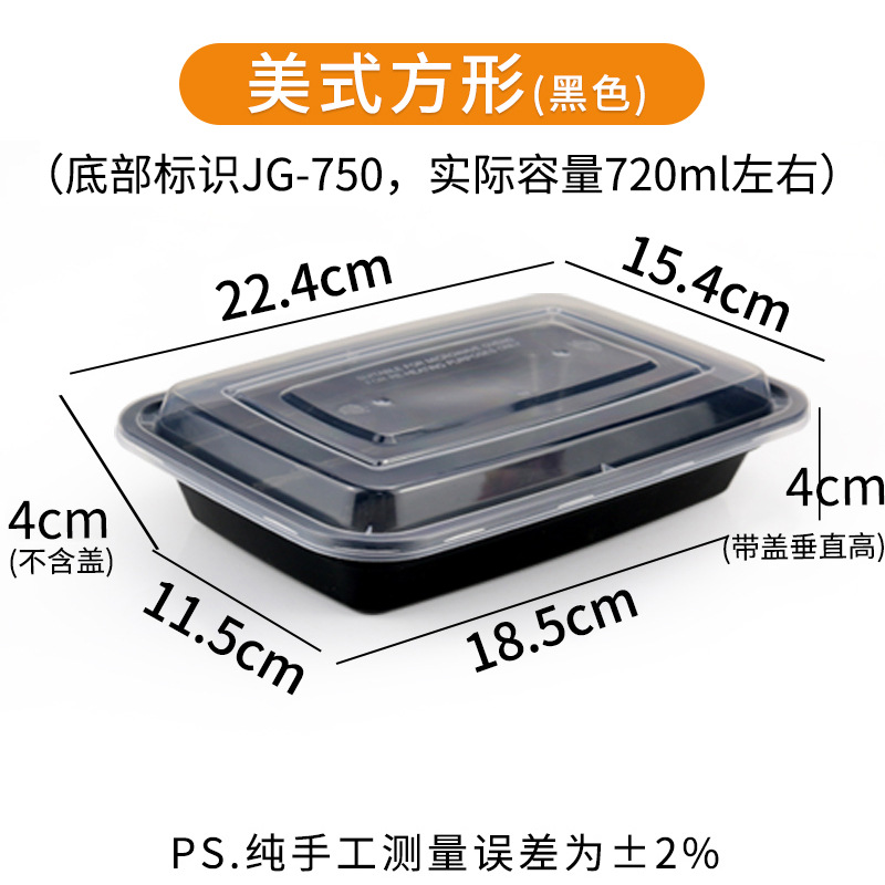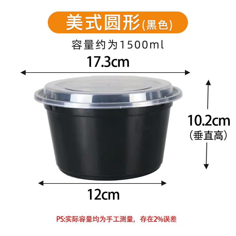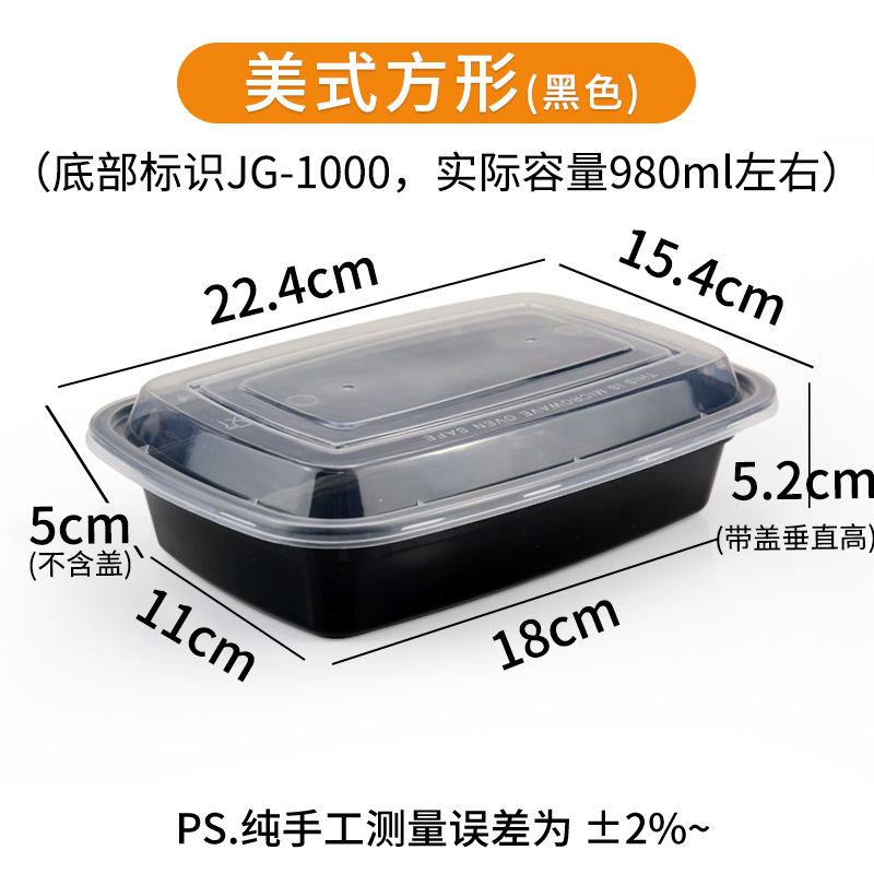 일회용 도시락 상자 미국 900ml 둥근 검은 색 두꺼운 뚜껑 도시락 직사각형 상업 테이크 아웃 상자