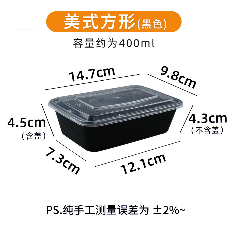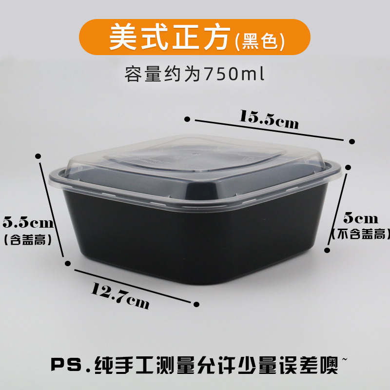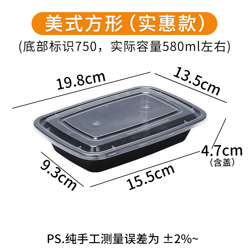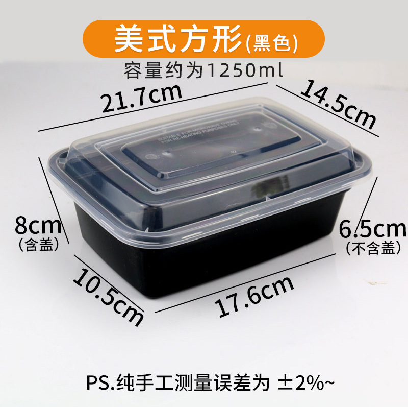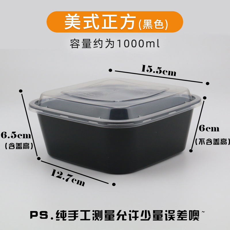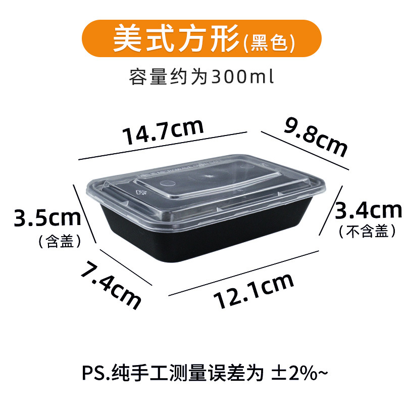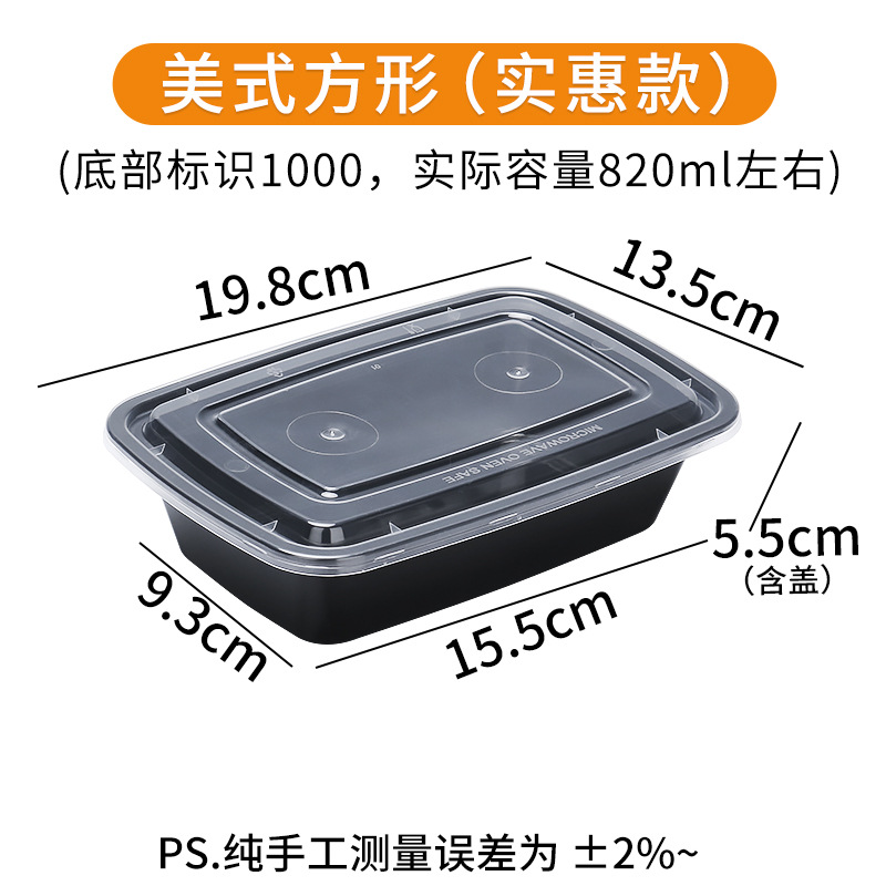 일회용 도시락 상자 미국 900ml 둥근 검은 색 두꺼운 뚜껑 도시락 직사각형 상업 테이크 아웃 상자스토어 가기