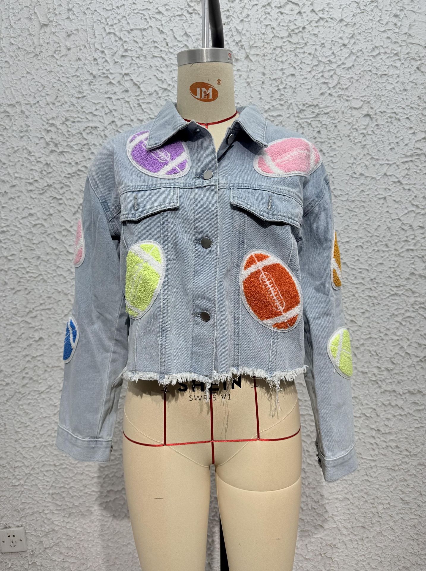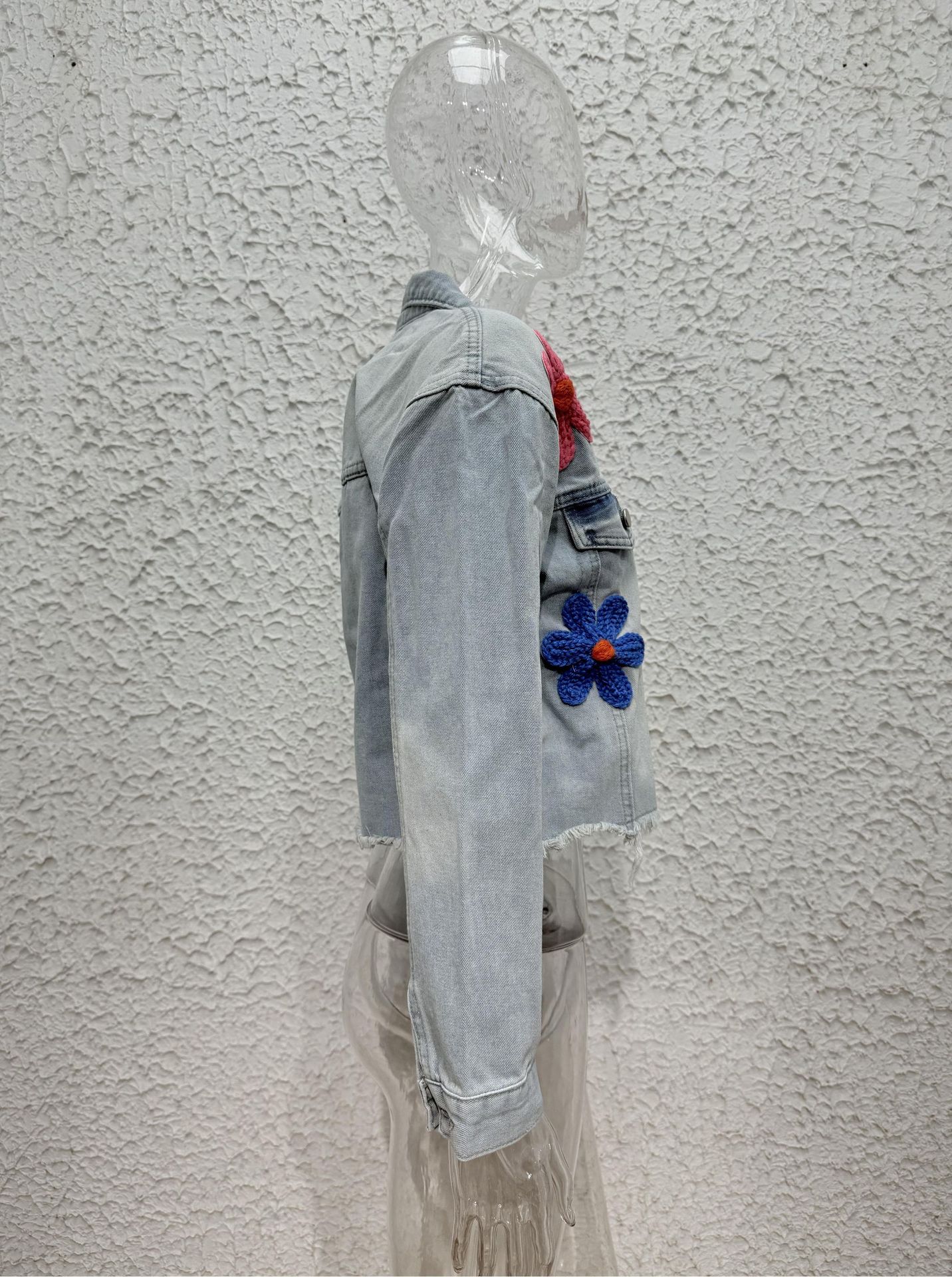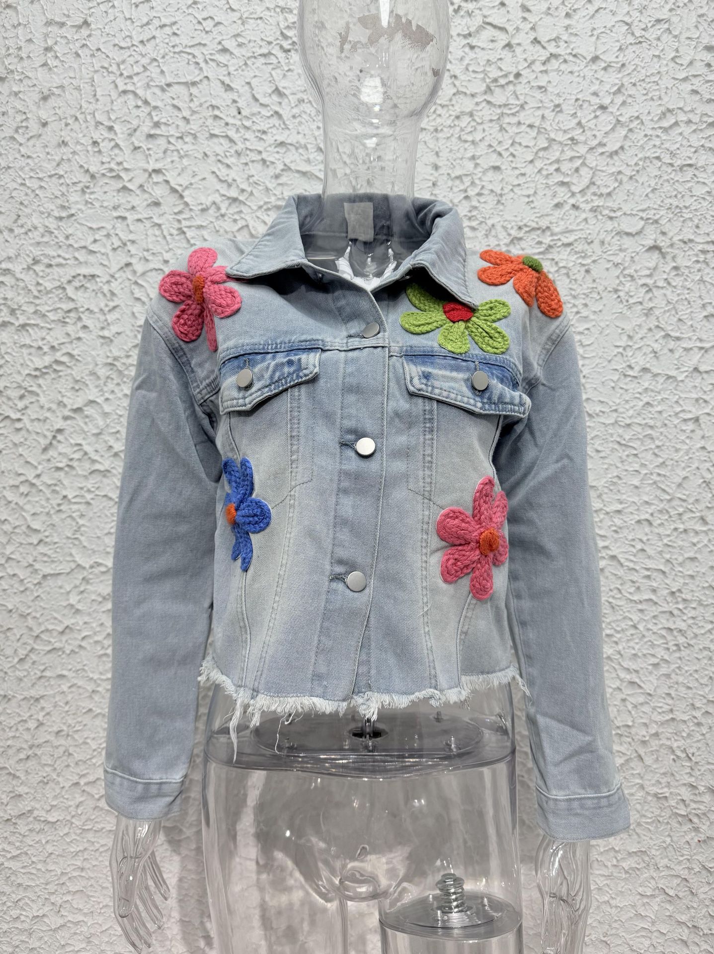 대외 무역 2025 봄과 여름 유럽과 미국 스타일의 국경 새로운 멀티 컬러 3 차원 장식 데님 재킷 코트 긴 소매 최고 여성스토어 가기