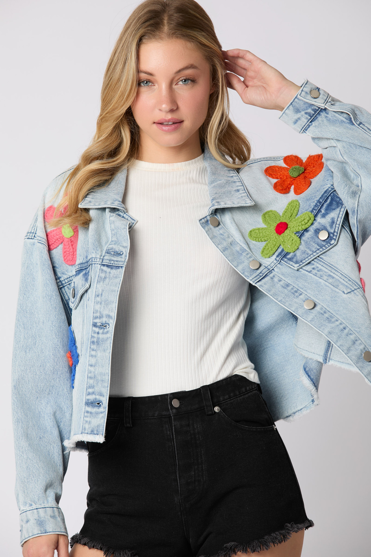 대외 무역 2025 봄과 여름 유럽과 미국 스타일의 국경 새로운 멀티 컬러 3 차원 장식 데님 재킷 코트 긴 소매 최고 여성