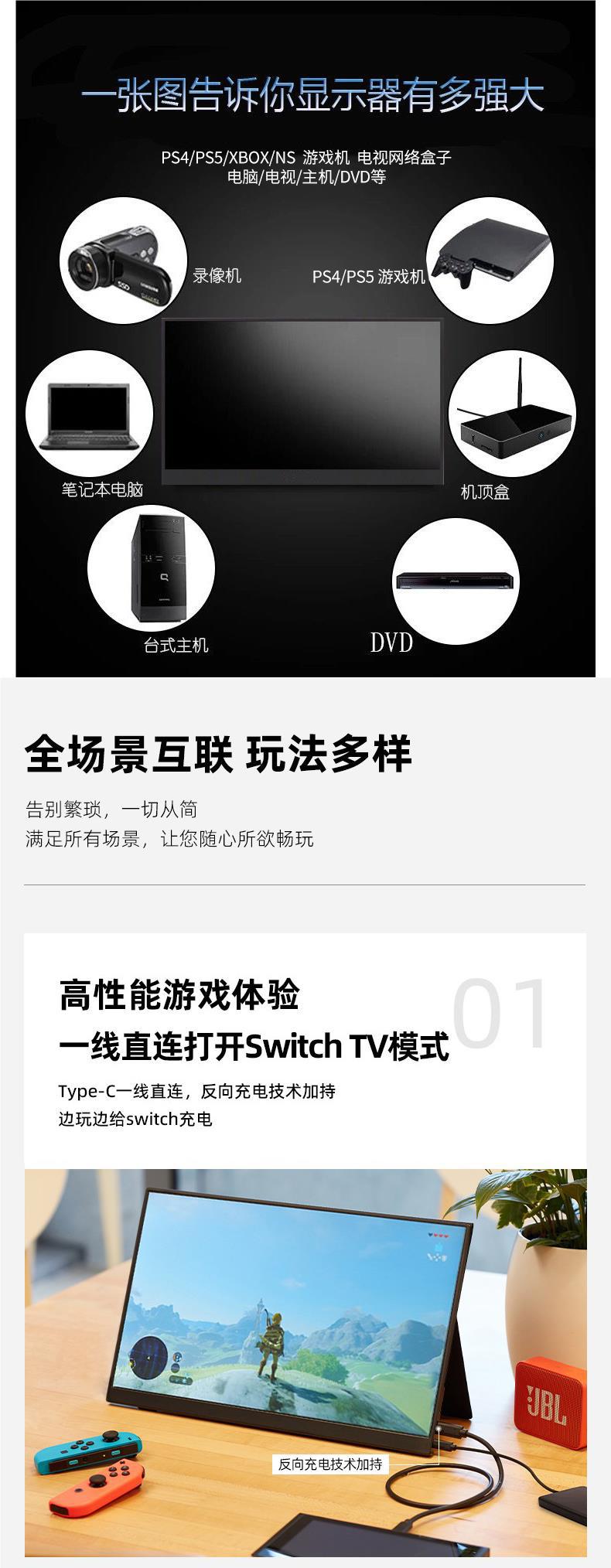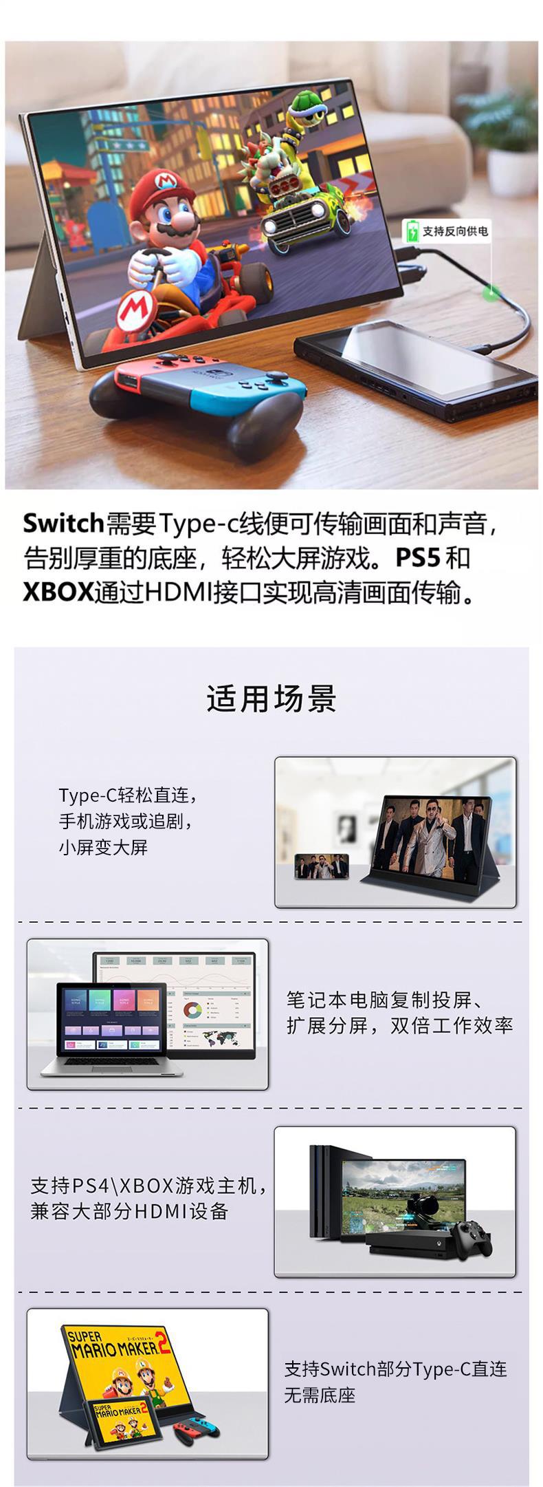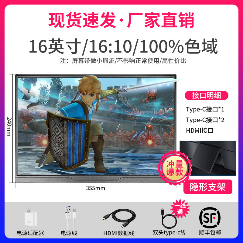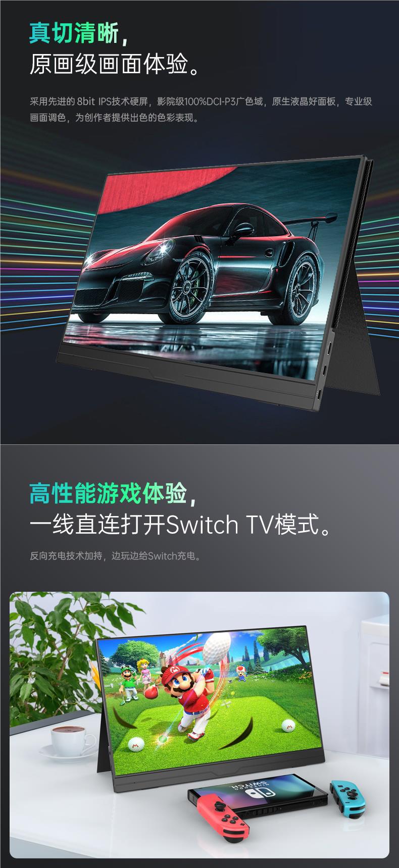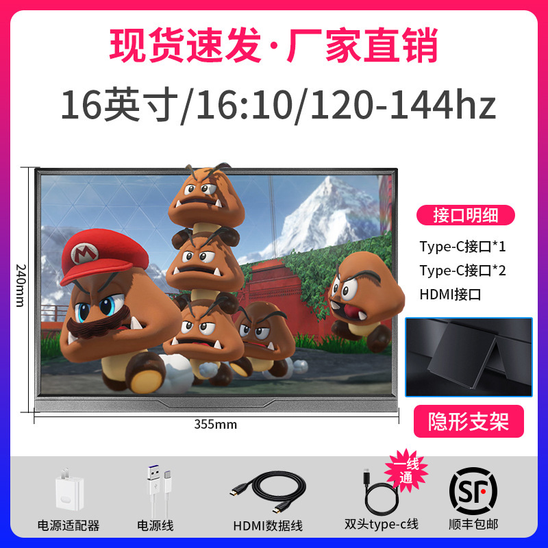 • 17.6inch : 10 120hz 높은 브러시 100% 색 영역 Type-C 인터페이스 완벽 공식 표준 브래킷 모델