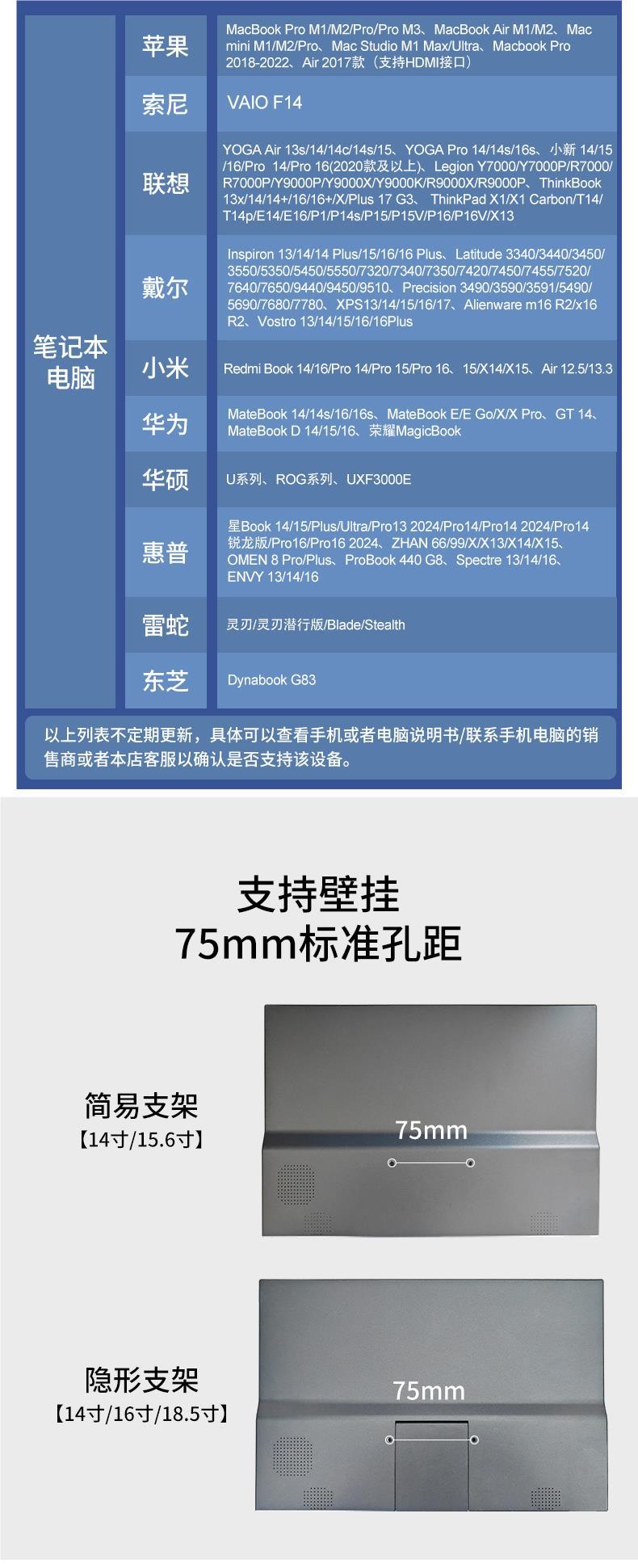 • 17.6inch : 10Type-C 인터페이스 보이지 않는 브래킷 완벽 공식 표준 브래킷 모델