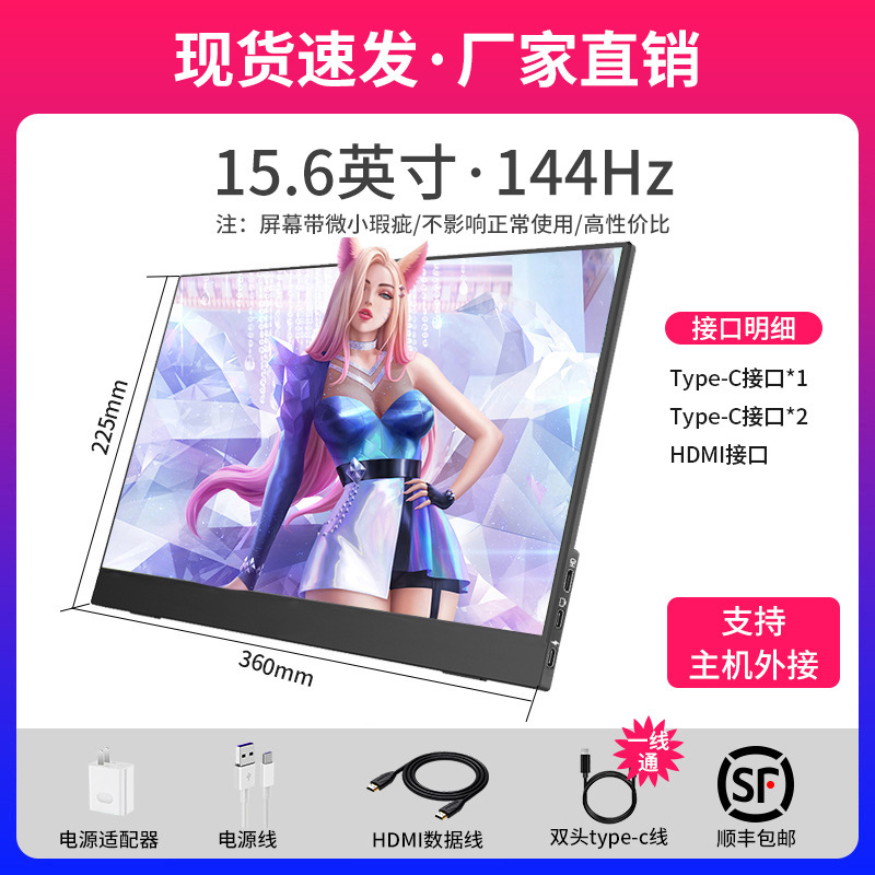 휴대용 디스플레이 IPS14 인치 15.6 인치 144HZ 노트북 확장 화면 PS4/SWITCH 외부 4K 서브 스크린