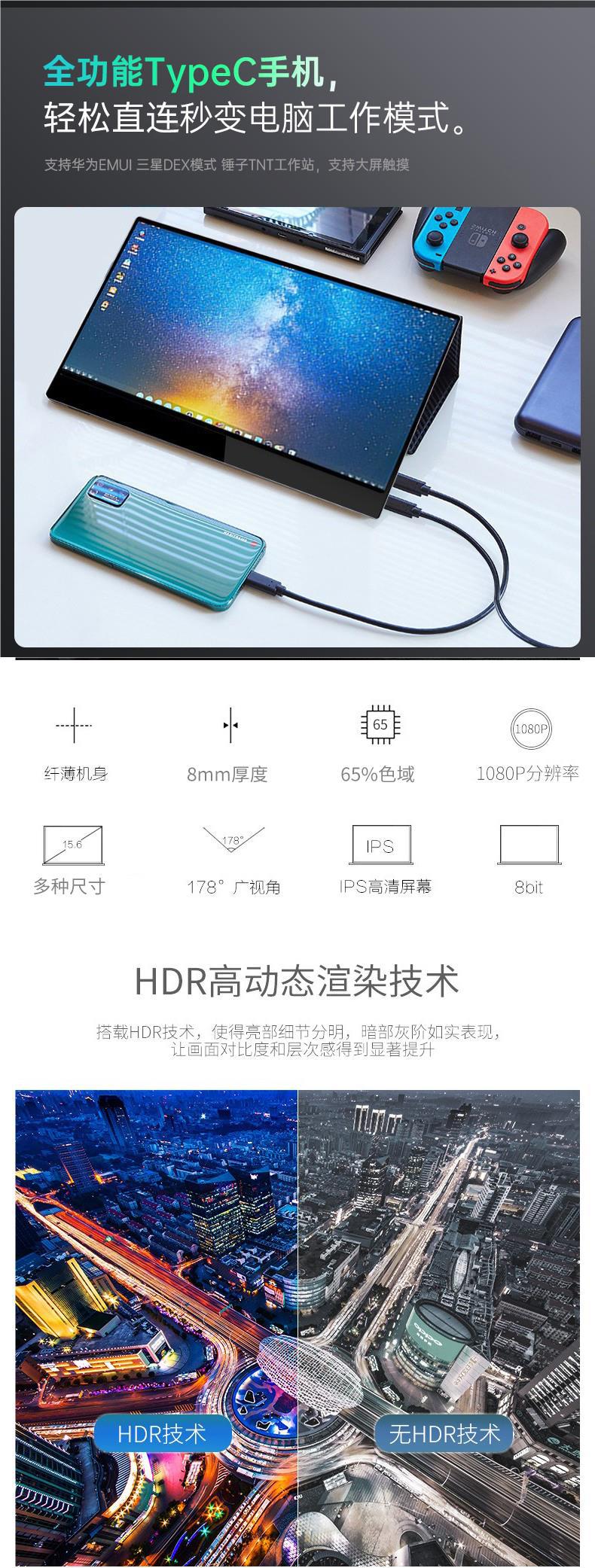 • 15.6inch : 10 2.2K 100% 색역 Type-C 인터페이스 임펄스 핫 모델 - 공식 표준 브래킷 모델