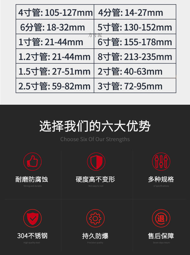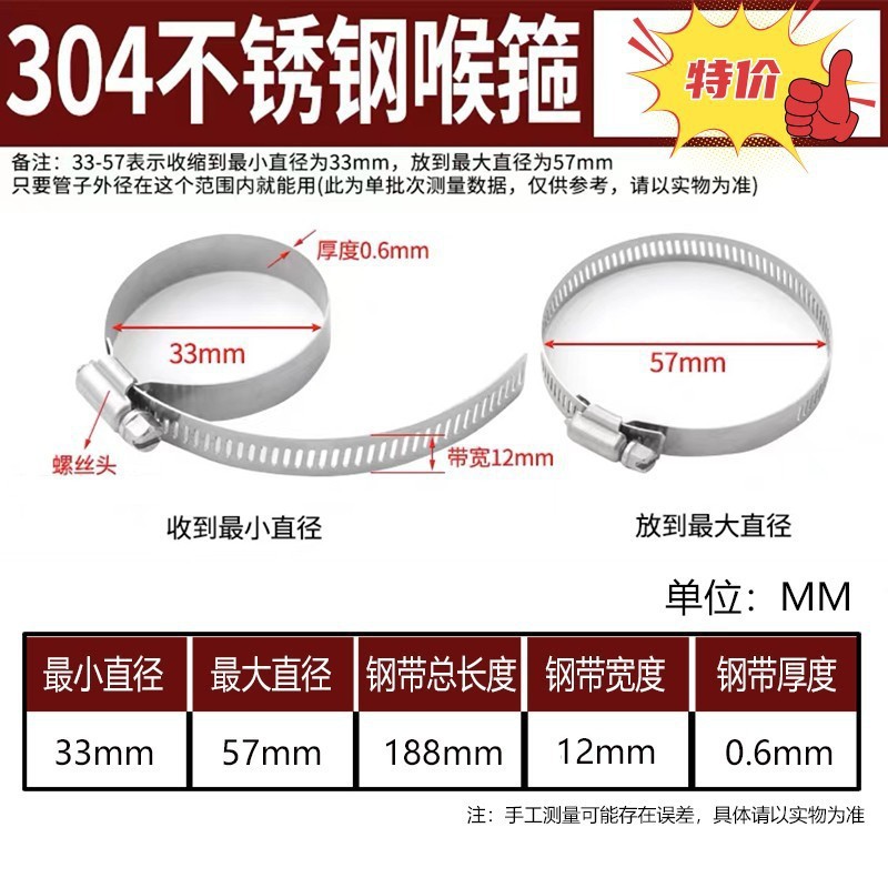 304 스테인레스 스틸 클램프 파이프 클램프 강력한 미국 호스 후프 파이프 클램프 파이프 브래킷 브리지 버클 공장스토어 가기