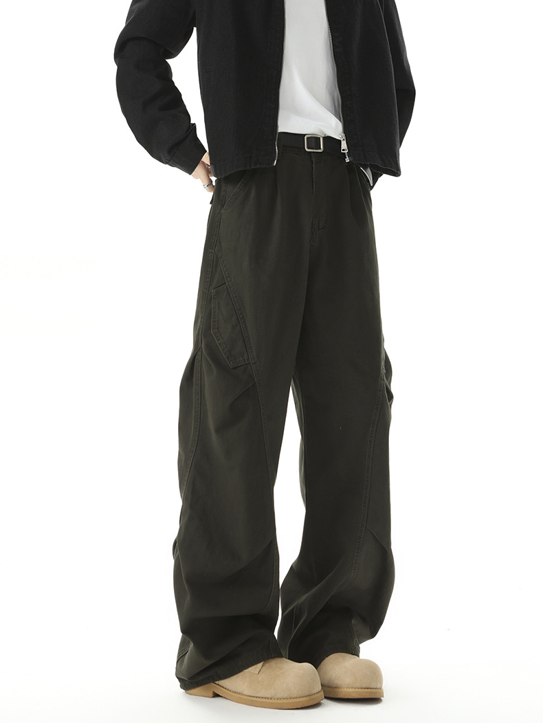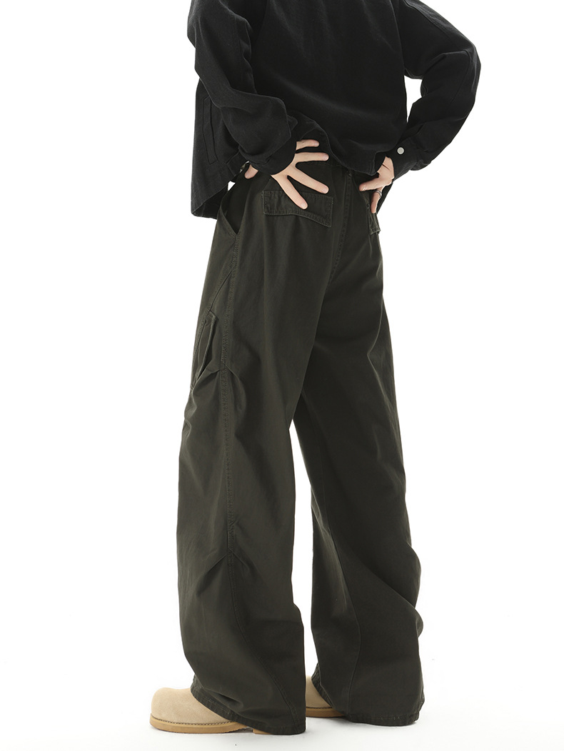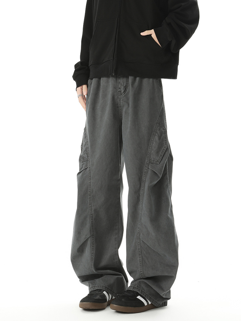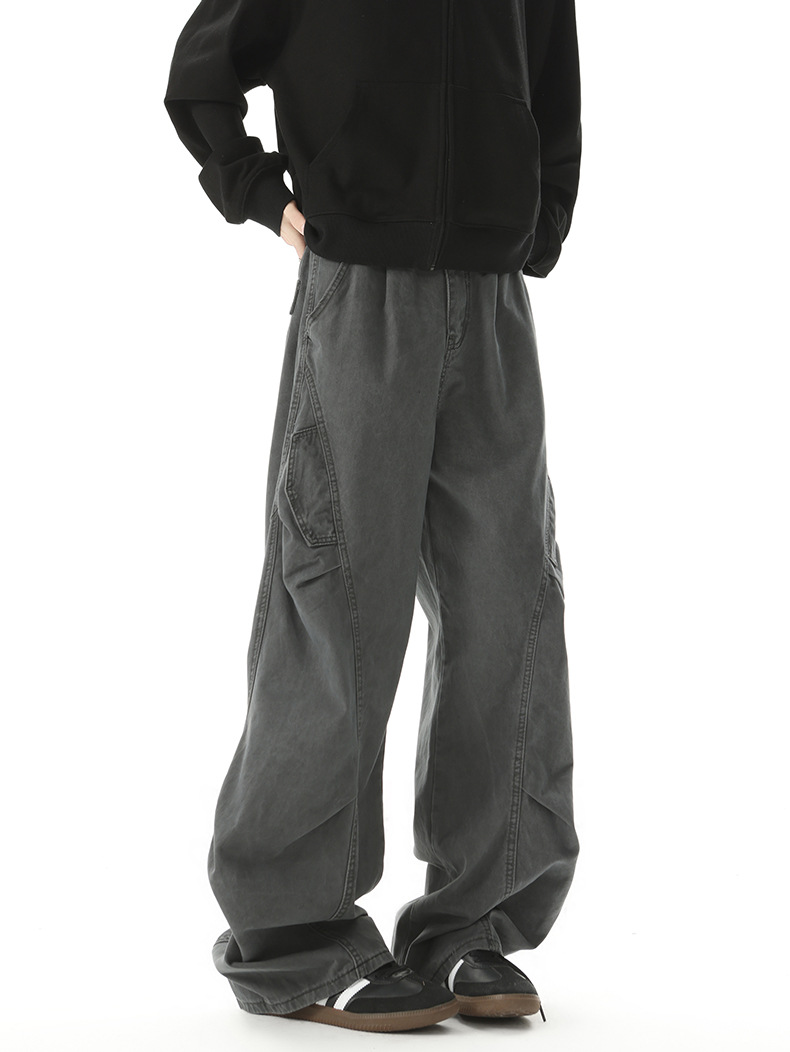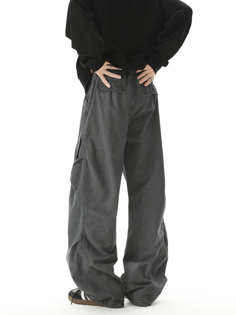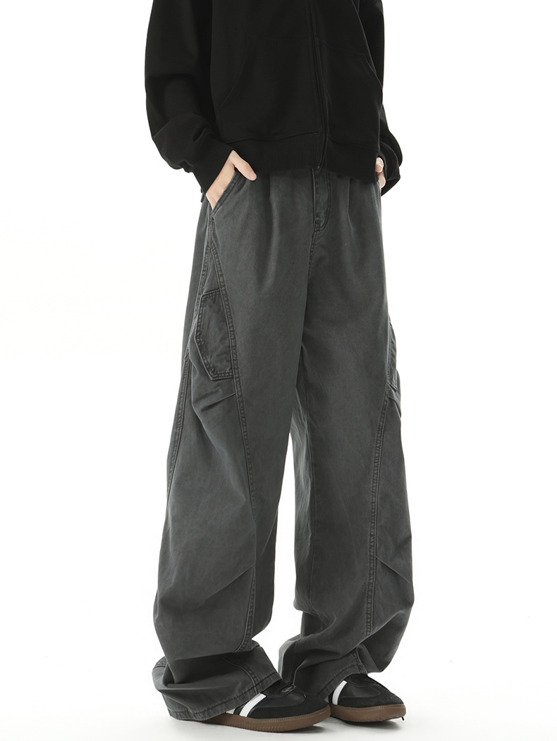 LKTM 남성복 # American Retro Deconstruction 디자인 센스 오버볼 남성과 여성의 느슨한 캐주얼 플리츠 스트레이트 팬츠스토어 가기