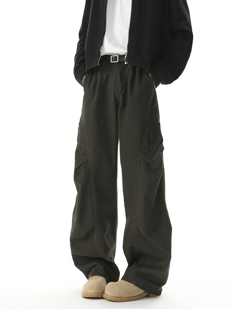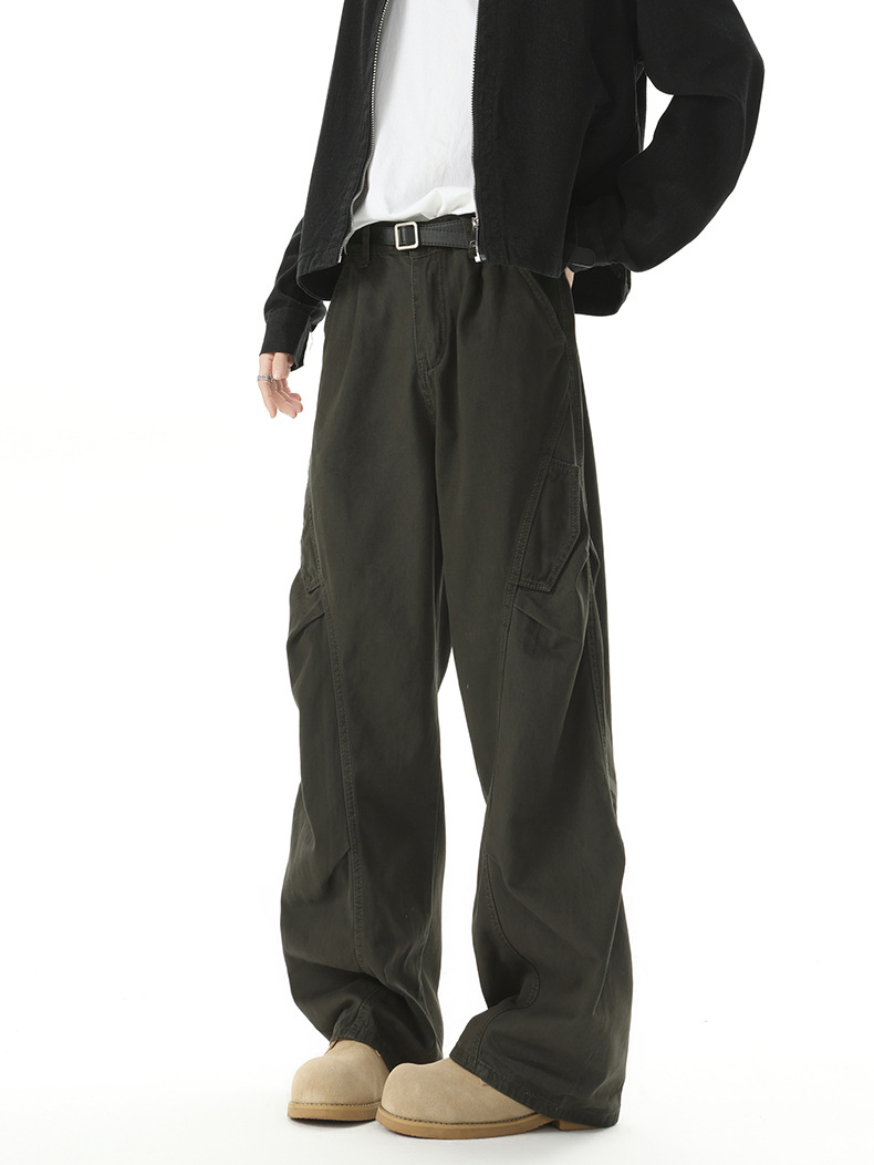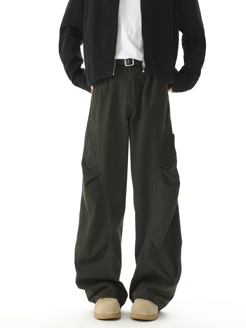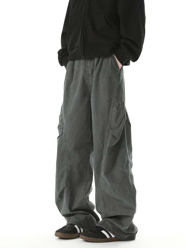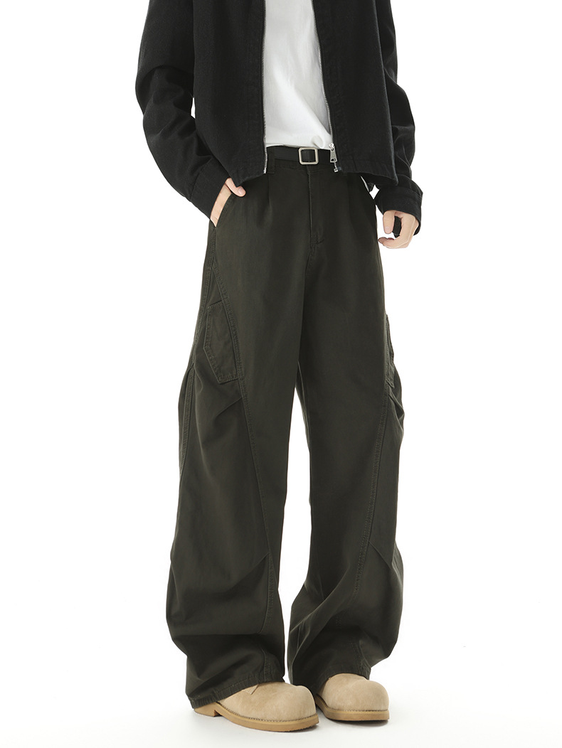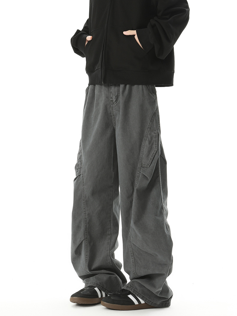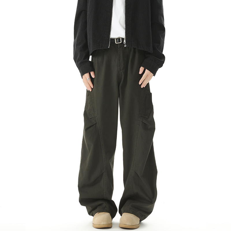 LKTM 남성복 # American Retro Deconstruction 디자인 센스 오버볼 남성과 여성의 느슨한 캐주얼 플리츠 스트레이트 팬츠스토어 가기